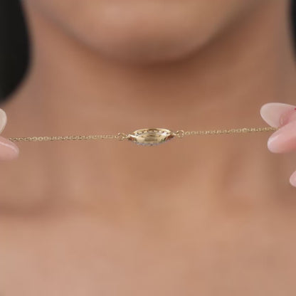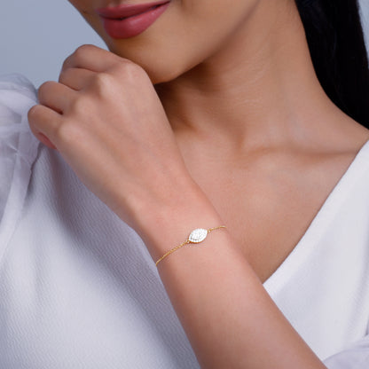 This pure gold bracelet has an eye motif entirely studded with lab-grown diamonds.