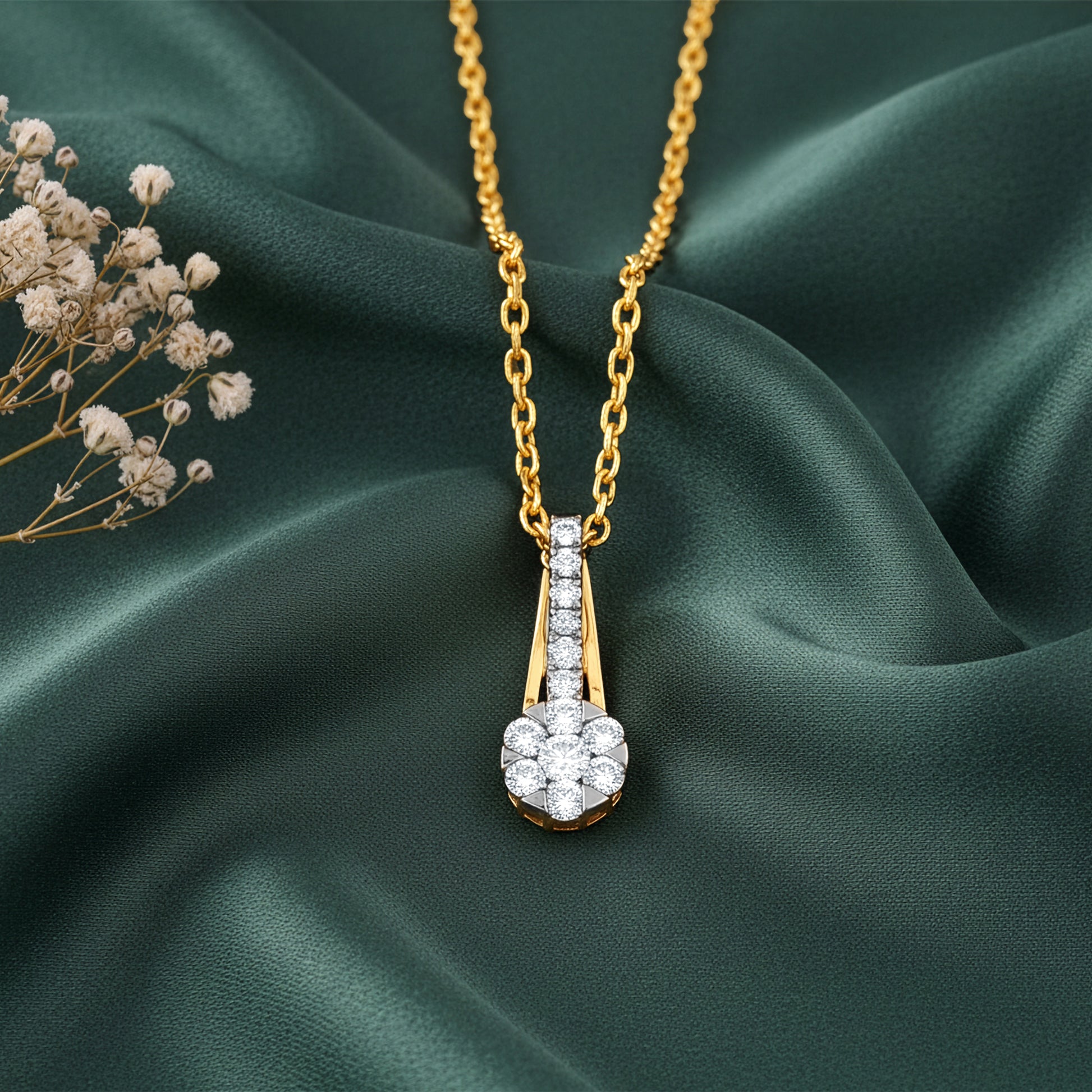 The Novara gold pendant features a floral motif with lab grown diamonds encrusted at the centre, designed for the woman who carries grace and poise effortlessly. Its intricate floral design draws attention to the sparkling centre. Try the exquisite lab grown diamond jewellery from Heer By GIVA today.