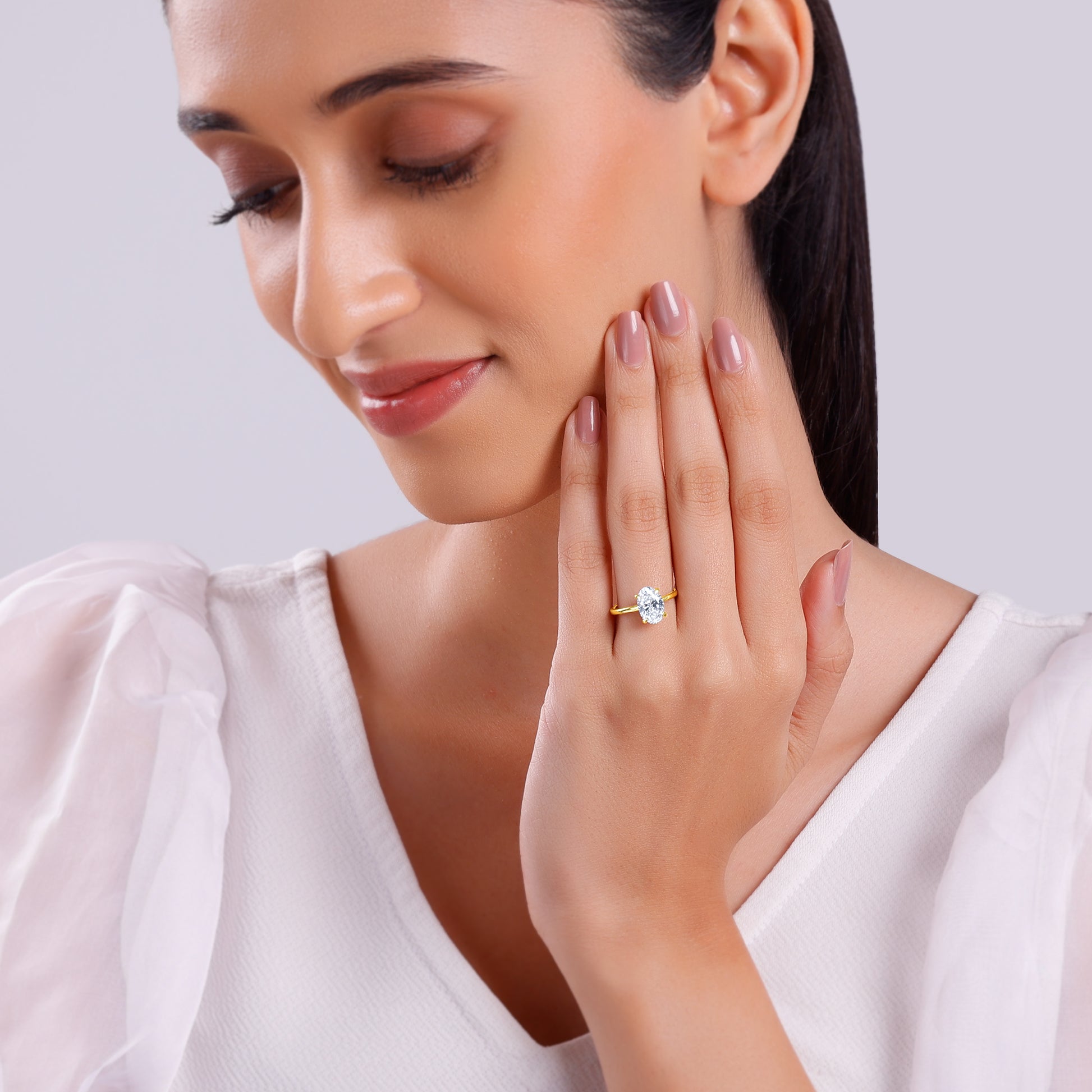 The future of fine jewellery is here, clean, conscious, quietly iconic. Just like your presence. This pure gold ring for women features an oval cut solitaire lab grown diamond as a centrepiece. Try the exquisite lab grown diamond jewellery from Heer By GIVA today.