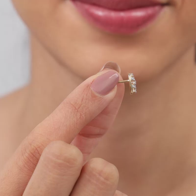 For the one whose light shines brightest, these elegant diamonds offer a timeless reminder that your paths are forever connected. These gold earrings for women feature a contemporary oval design with fluid crisscrossing gold lines that elegantly hold a scatter of brilliant lab grown diamonds. Try the exquisite lab grown diamond jewellery from Heer By GIVA today.
