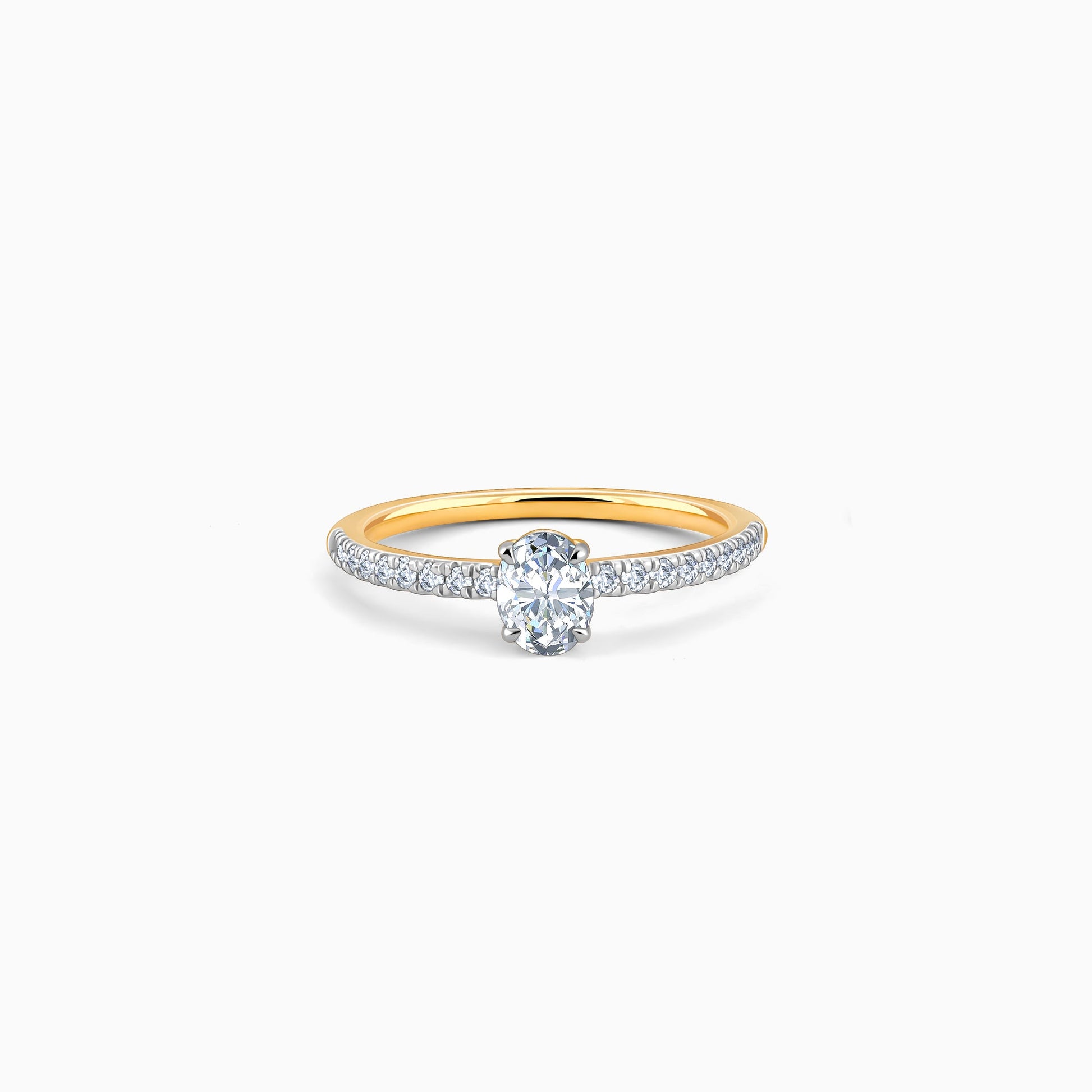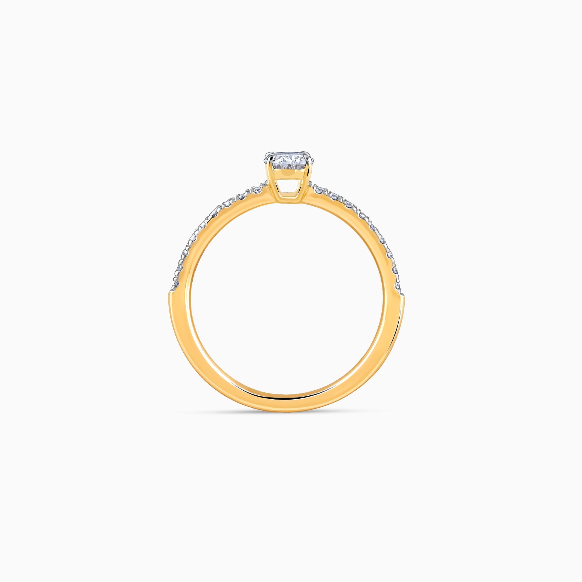 This pure gold solitaire ring features an oval centrepiece with lab-grown diamonds studded along the band.