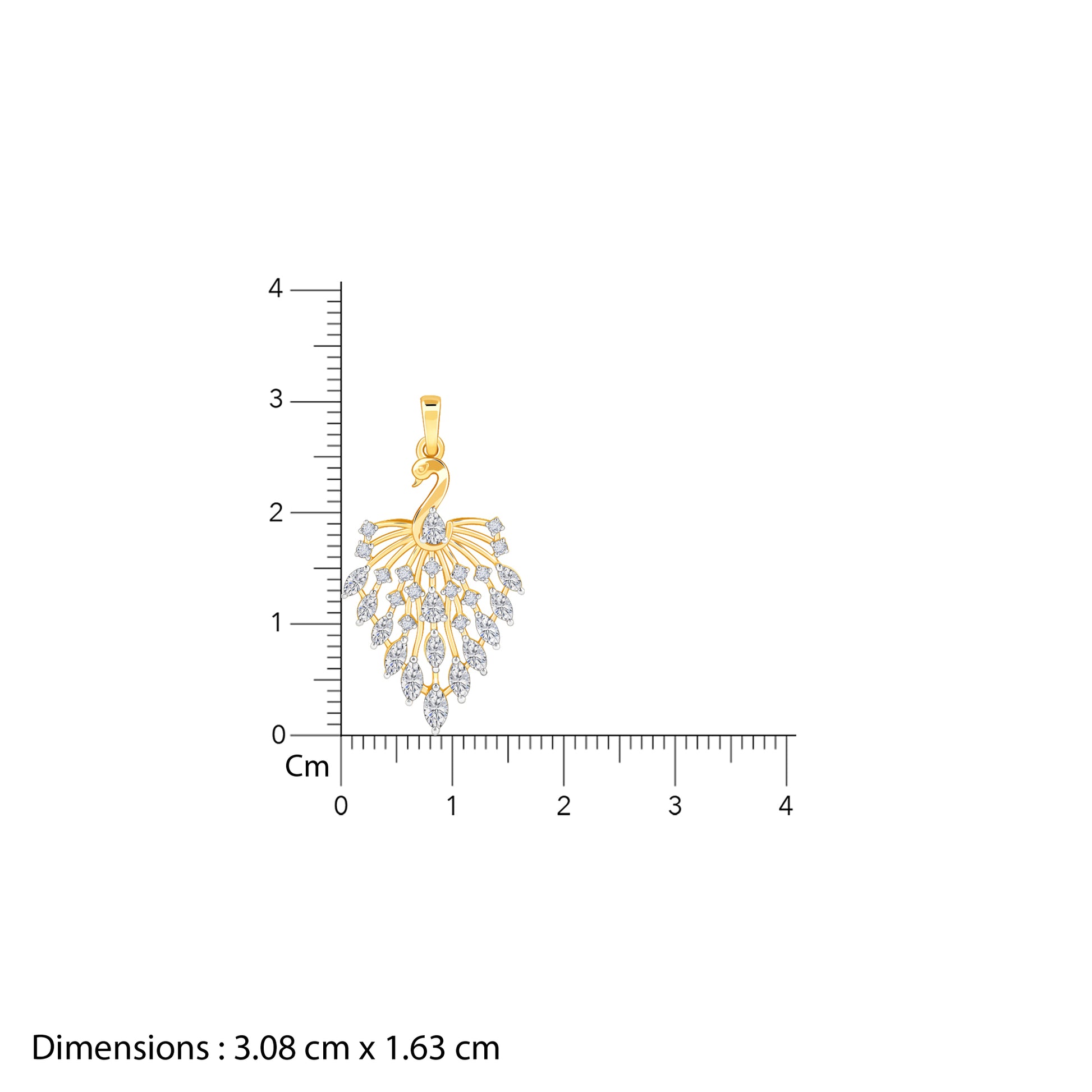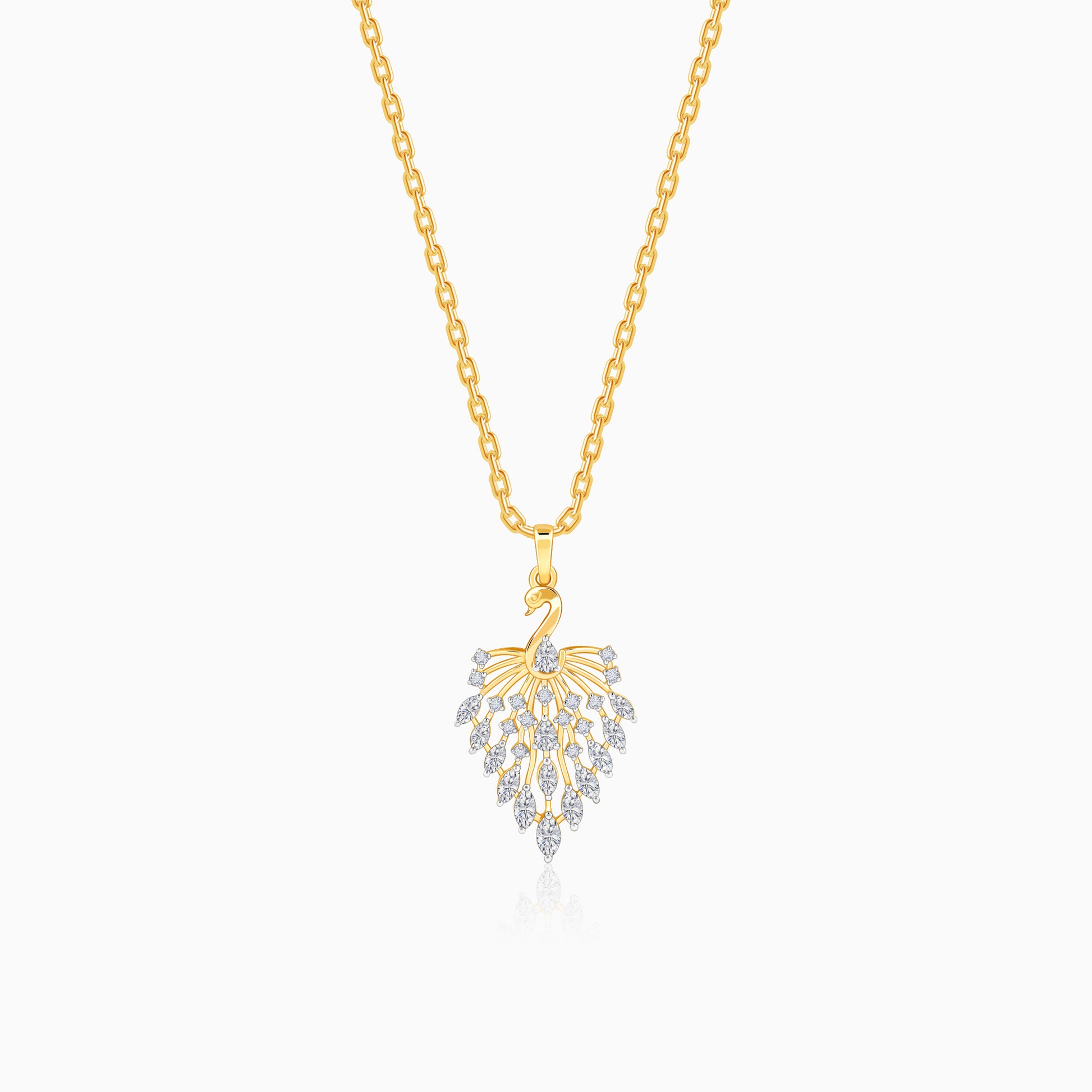 This gold pendant for women showcases a graceful peacock motif, its feathers paved with sparkling lab grown diamonds that capture light in a dazzling display.