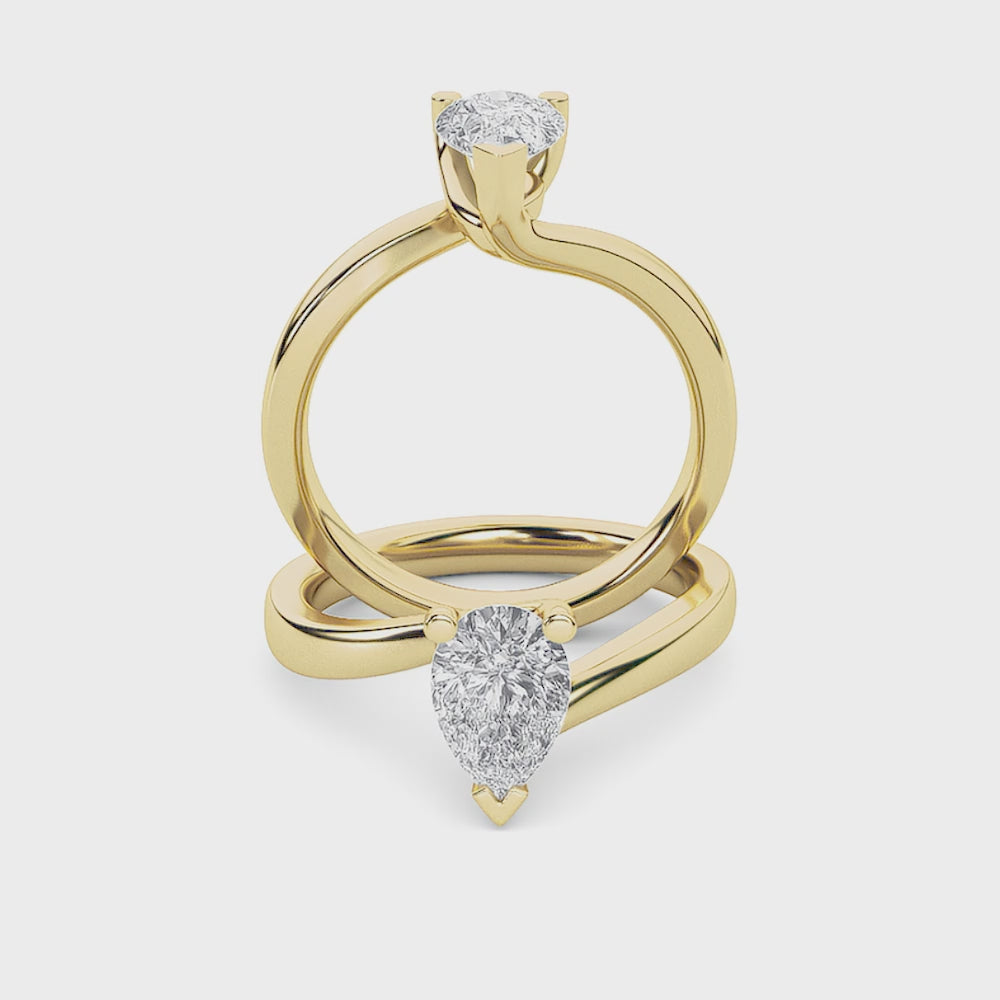 This pure gold for women ring features a pear-shaped solitaire lab-grown diamond, elegantly set in a regal 3-prong setting.