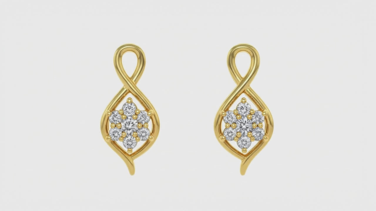 These pure gold earrings showcase an infinity symbol intertwined with a flower motif, accented by sparkling diamonds, symbolising endless possibilities.