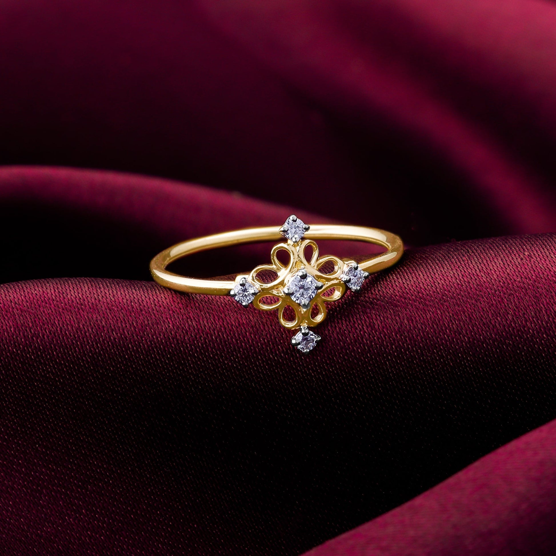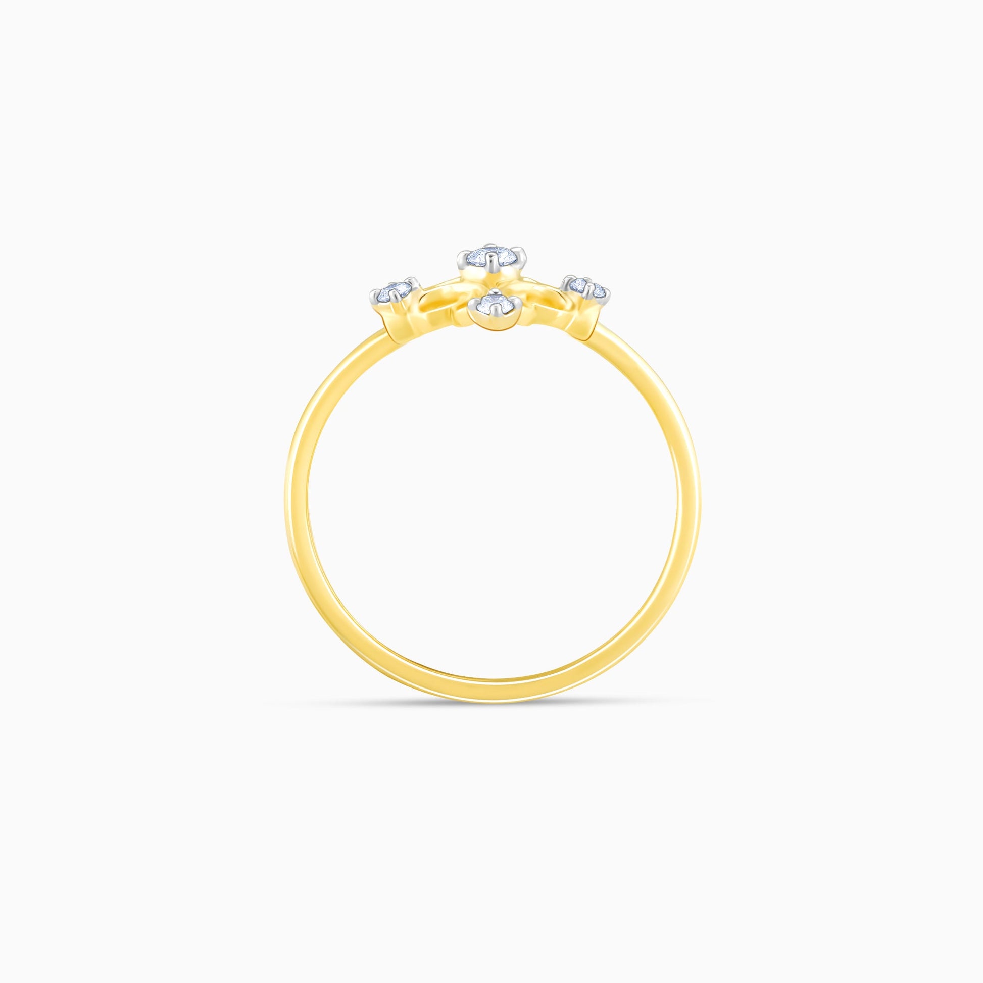 This gold ring has a flower motif studded with lab-grown diamonds.