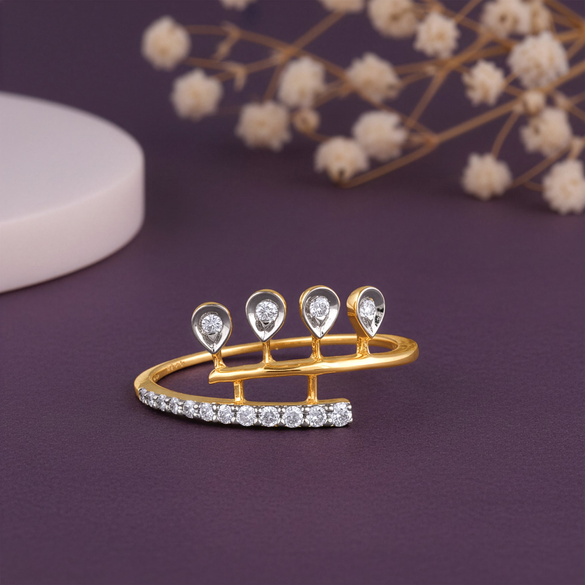 A gold ring that dances between symmetry and surprise, one side studded with lab grown diamonds, the other graced with four water drop-shaped stones. Made for the woman who moves through life like poetry in motion. Try the exquisite lab grown diamond jewellery from Heer By GIVA today.