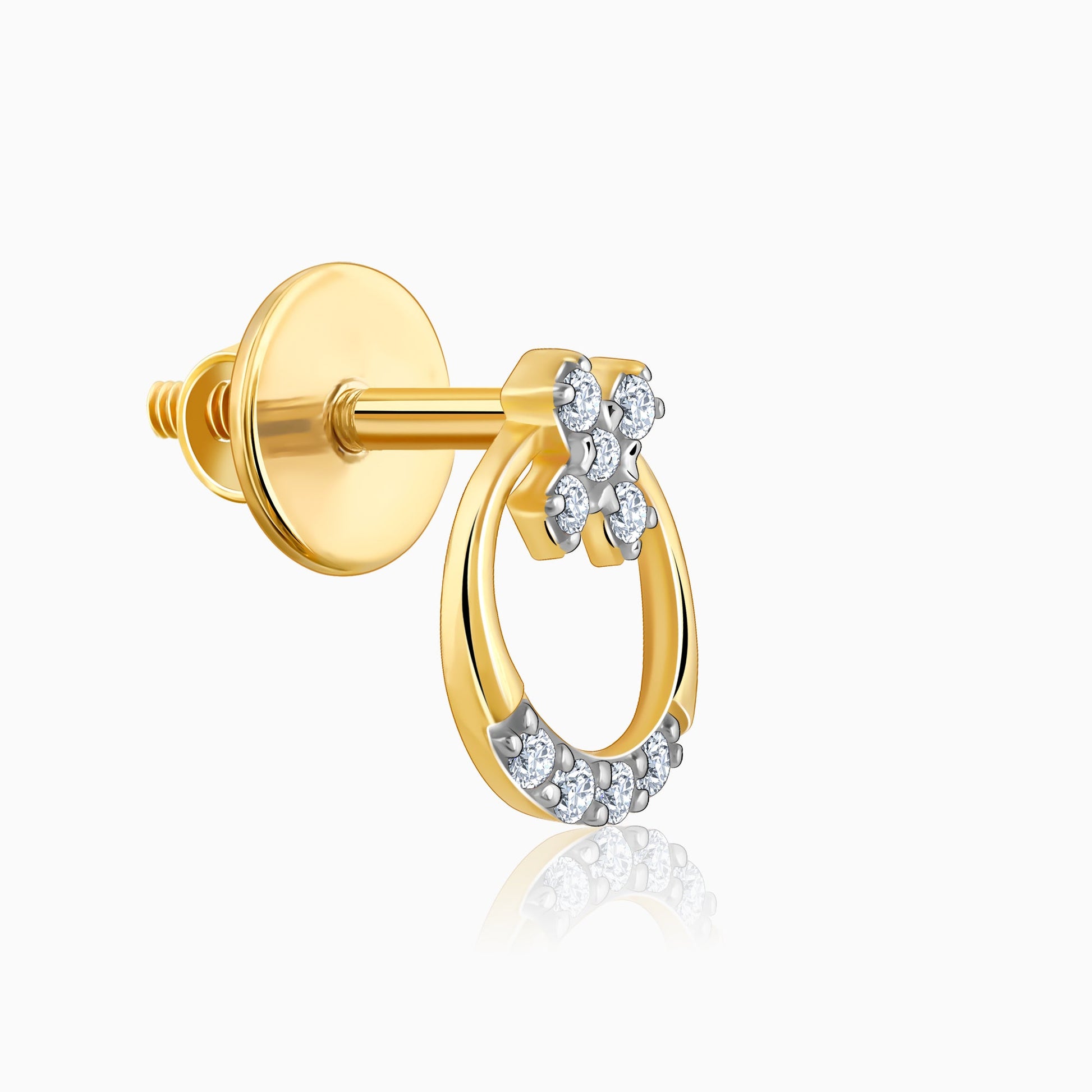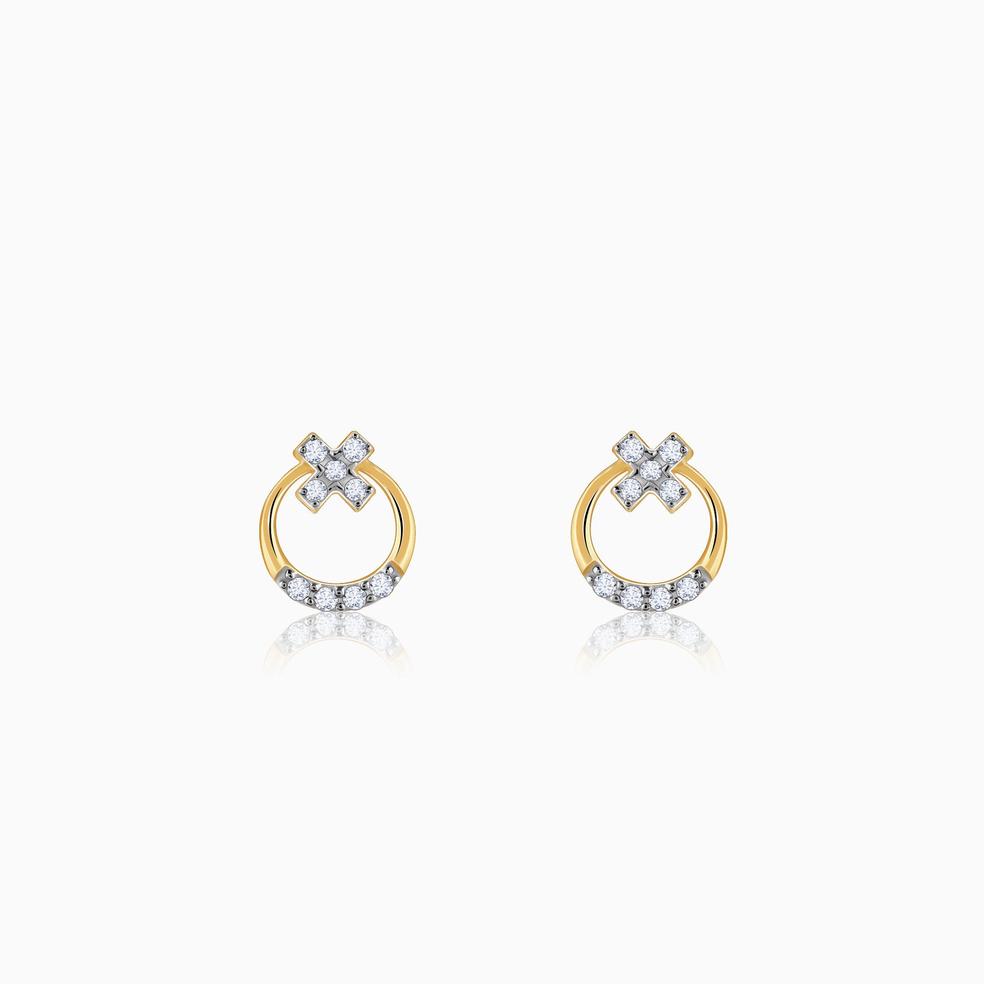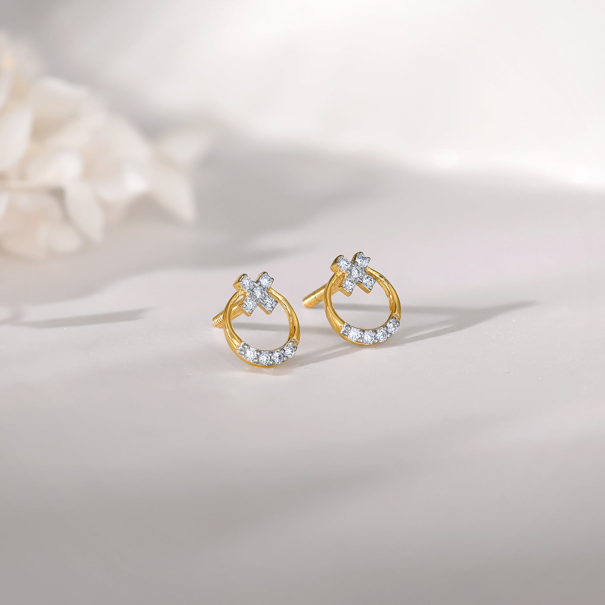 These pure gold earrings feature a fan design connected to a circular motif studded with lab grown diamonds.