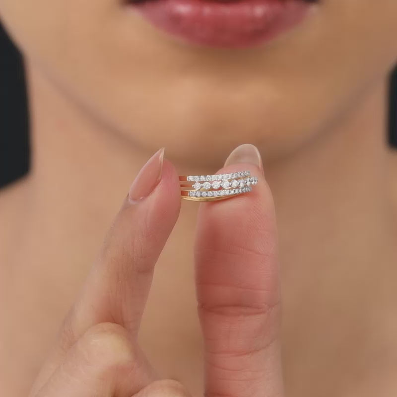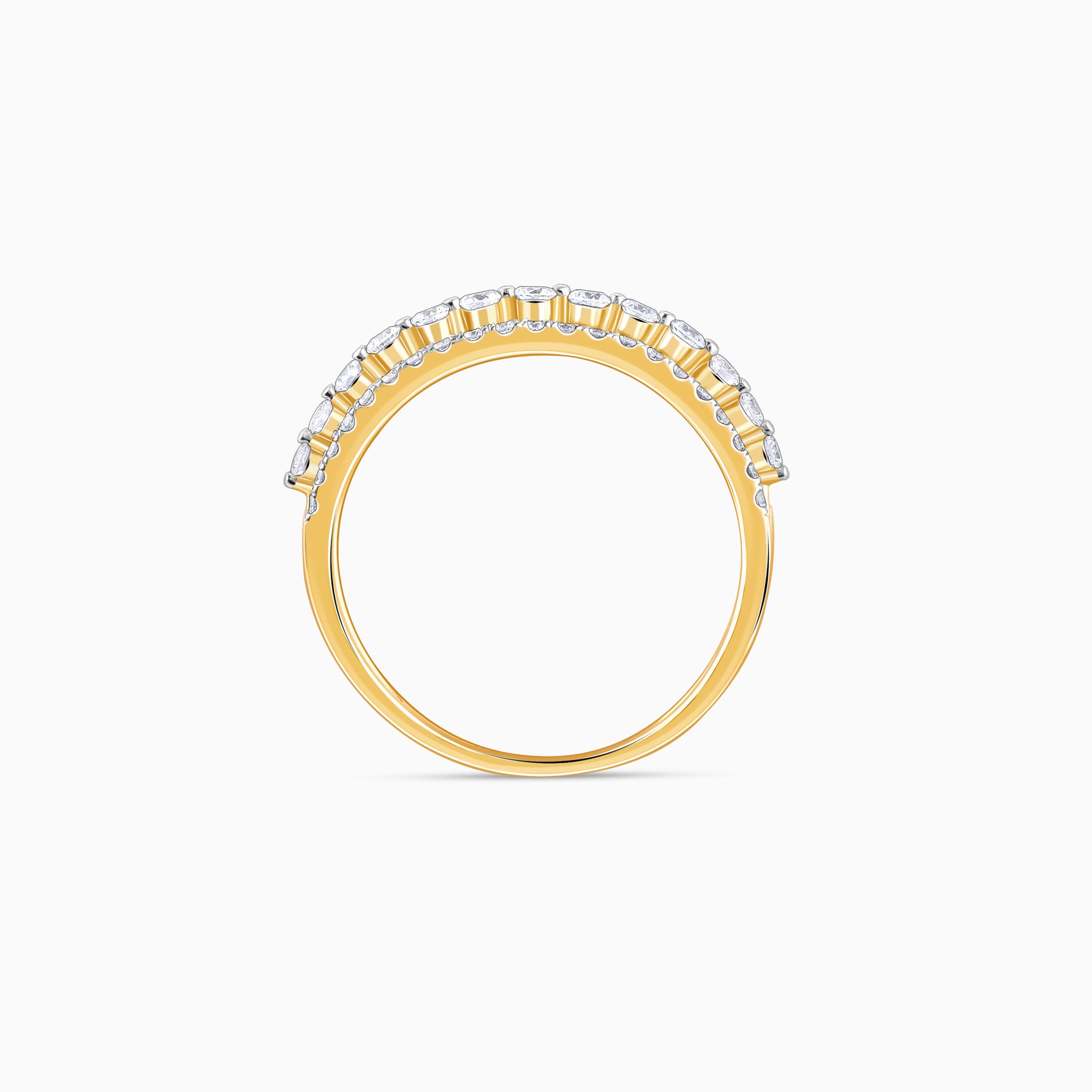 This pure gold ring features a unique design studded with lab grown diamonds.