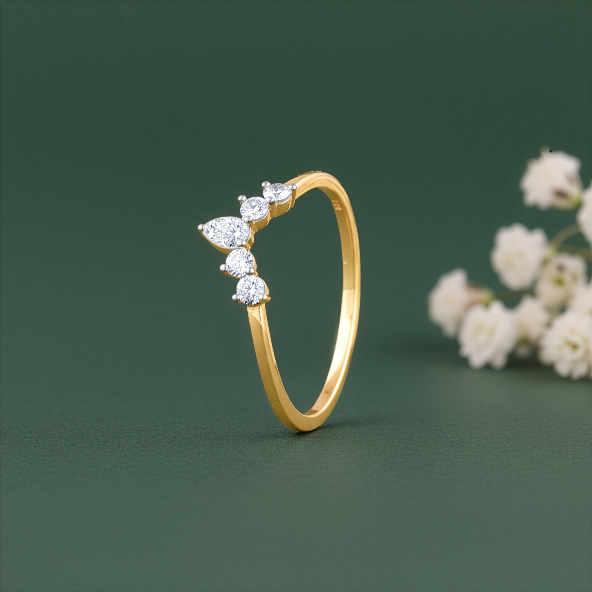 Rule your style with subtle royalty. This crown-shaped gold ring for women, studded with radiant lab grown diamonds, captures the essence of modern regality. Crafted for those who wear confidence like a crown, graceful, bold, and endlessly luminous. Try the exquisite lab grown diamond jewellery from Heer By GIVA today.