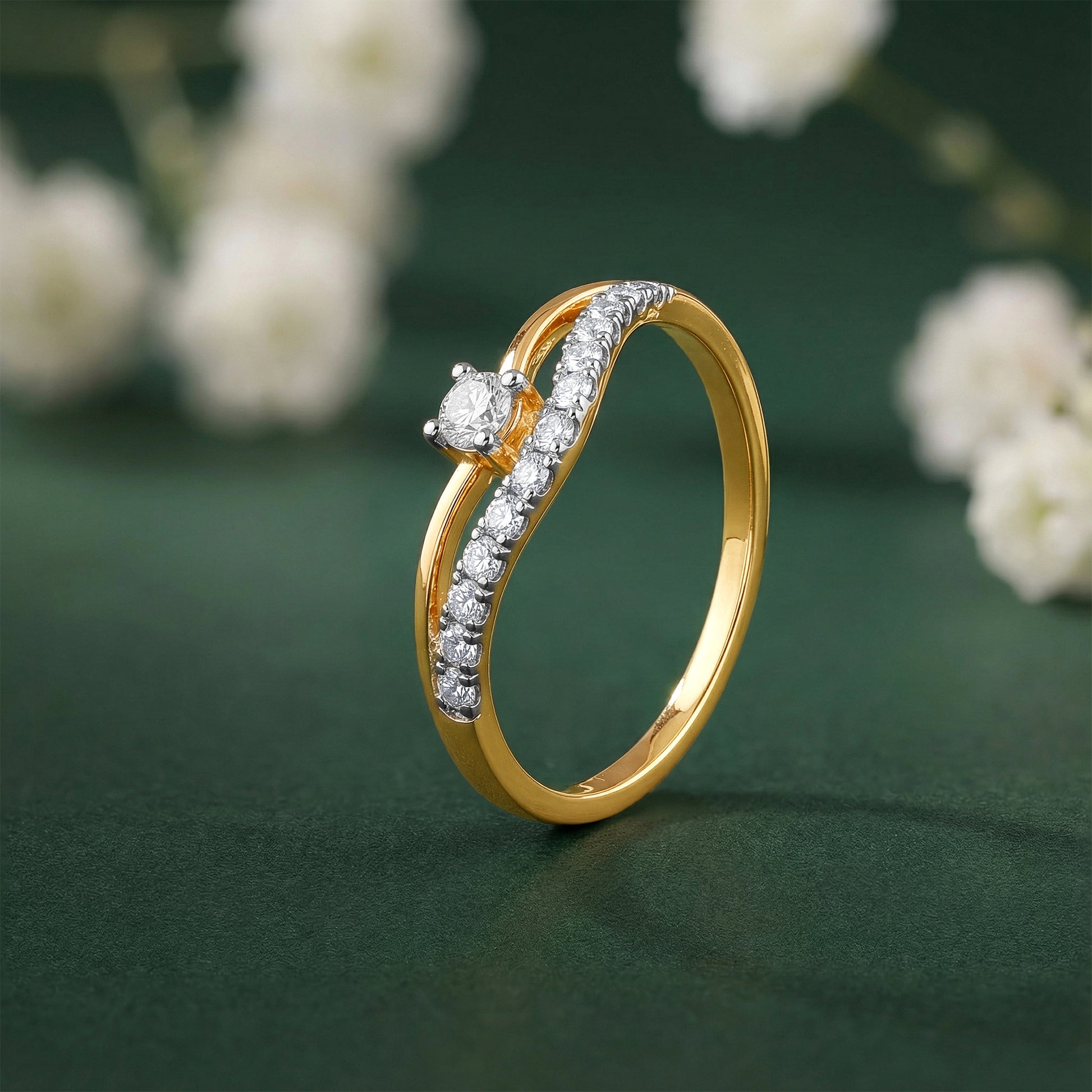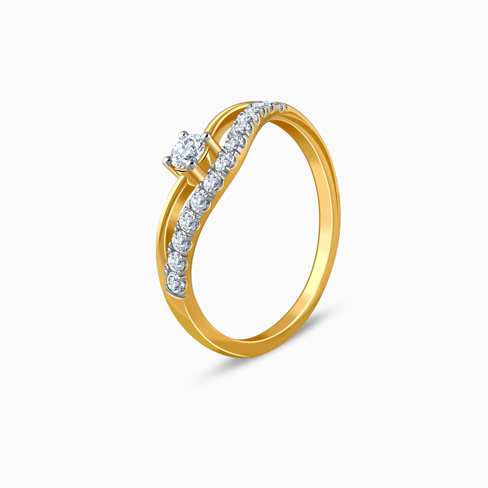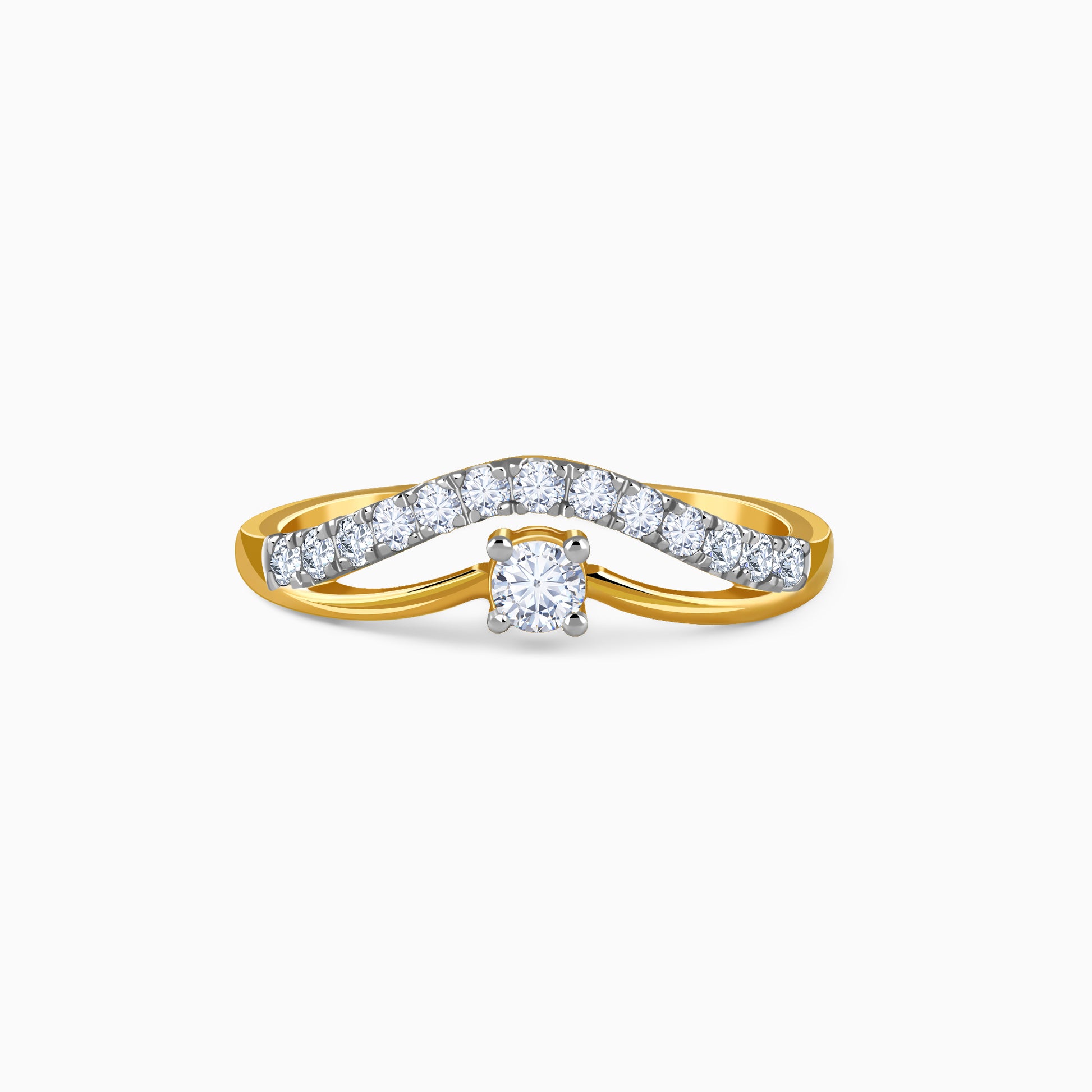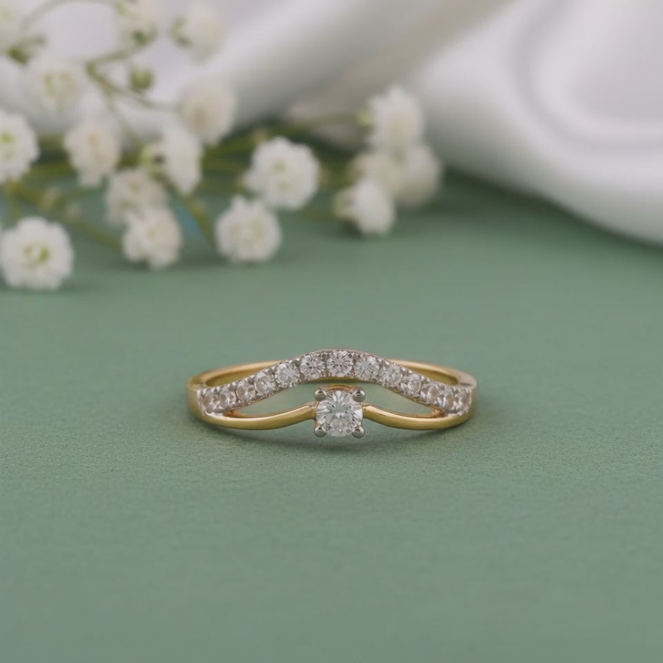A gold ring shaped into a crown-inspired form, where one band carries a trail of lab grown diamonds while the other rises to a single lab grown diamond at the centre. Designed for the woman who leads with quiet authority, the asymmetry brings strength and intent. Try the exquisite lab grown diamond jewellery from Heer By GIVA today.