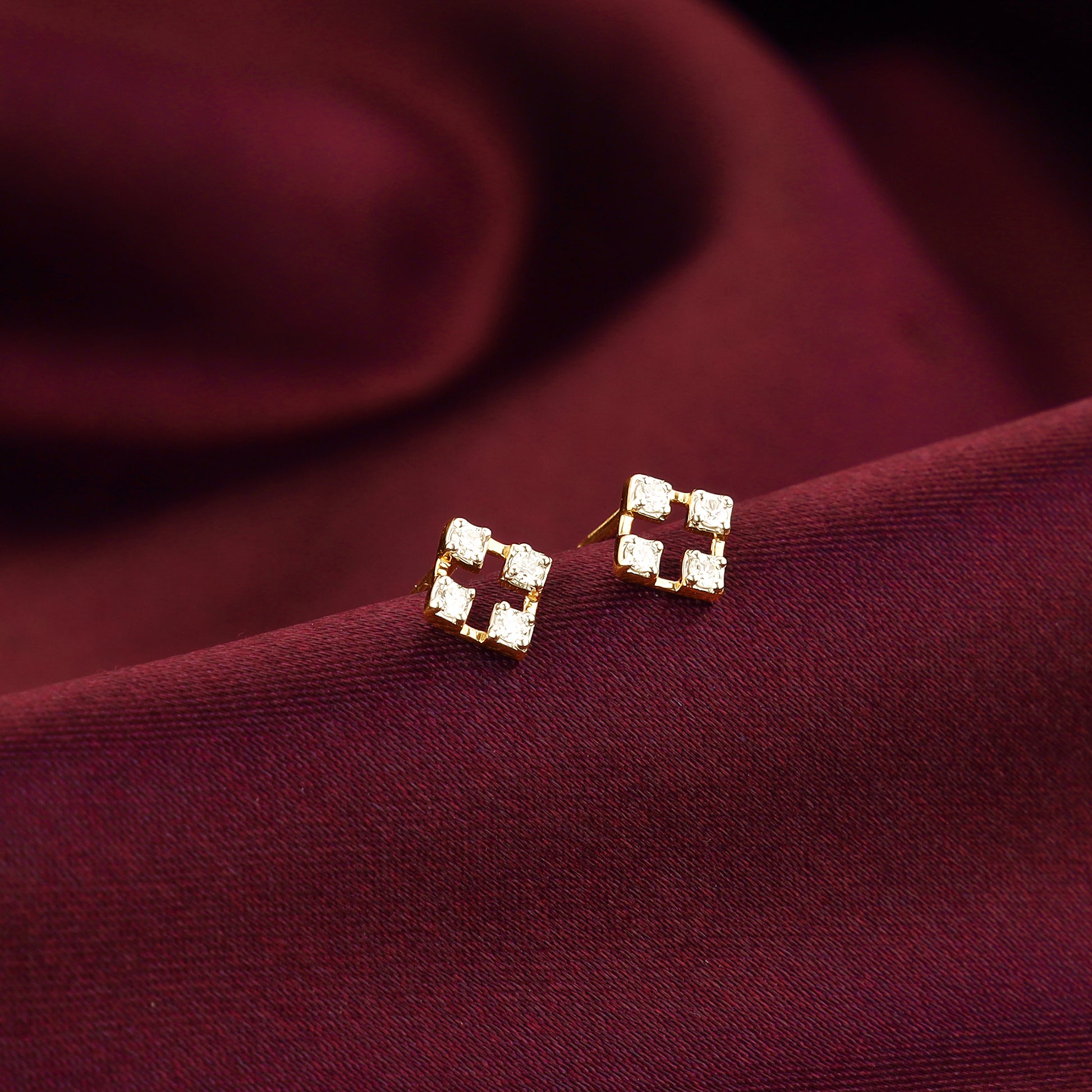 Gold Rhombus Diamond Stud Earrings