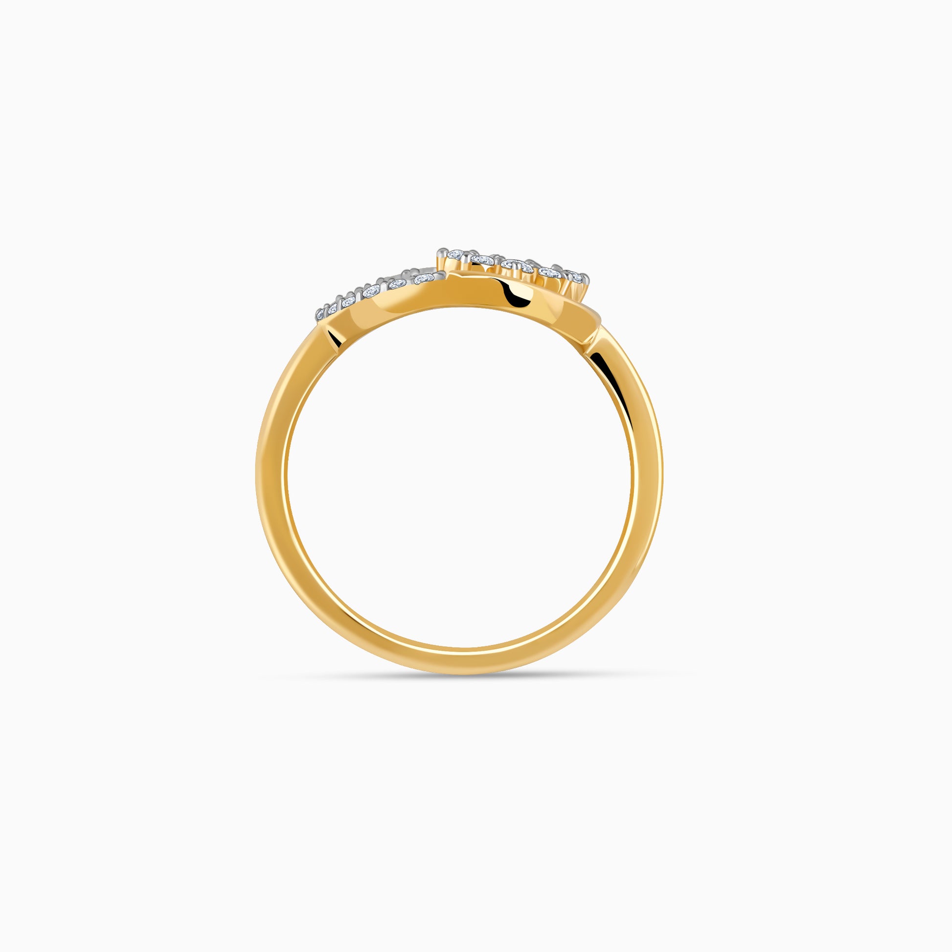 This gold ring features a circle with a floral motif, studded with lab-grown diamond.
