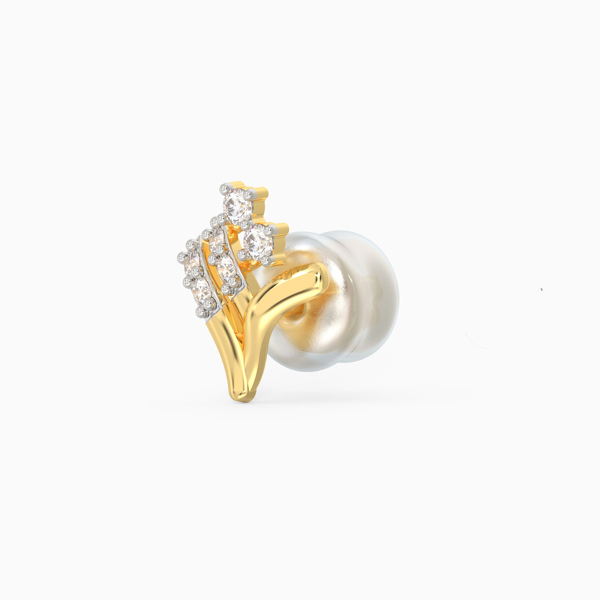 These gold earrings feature a sprig motif in a rhombus shape studded with lab-grown diamonds.