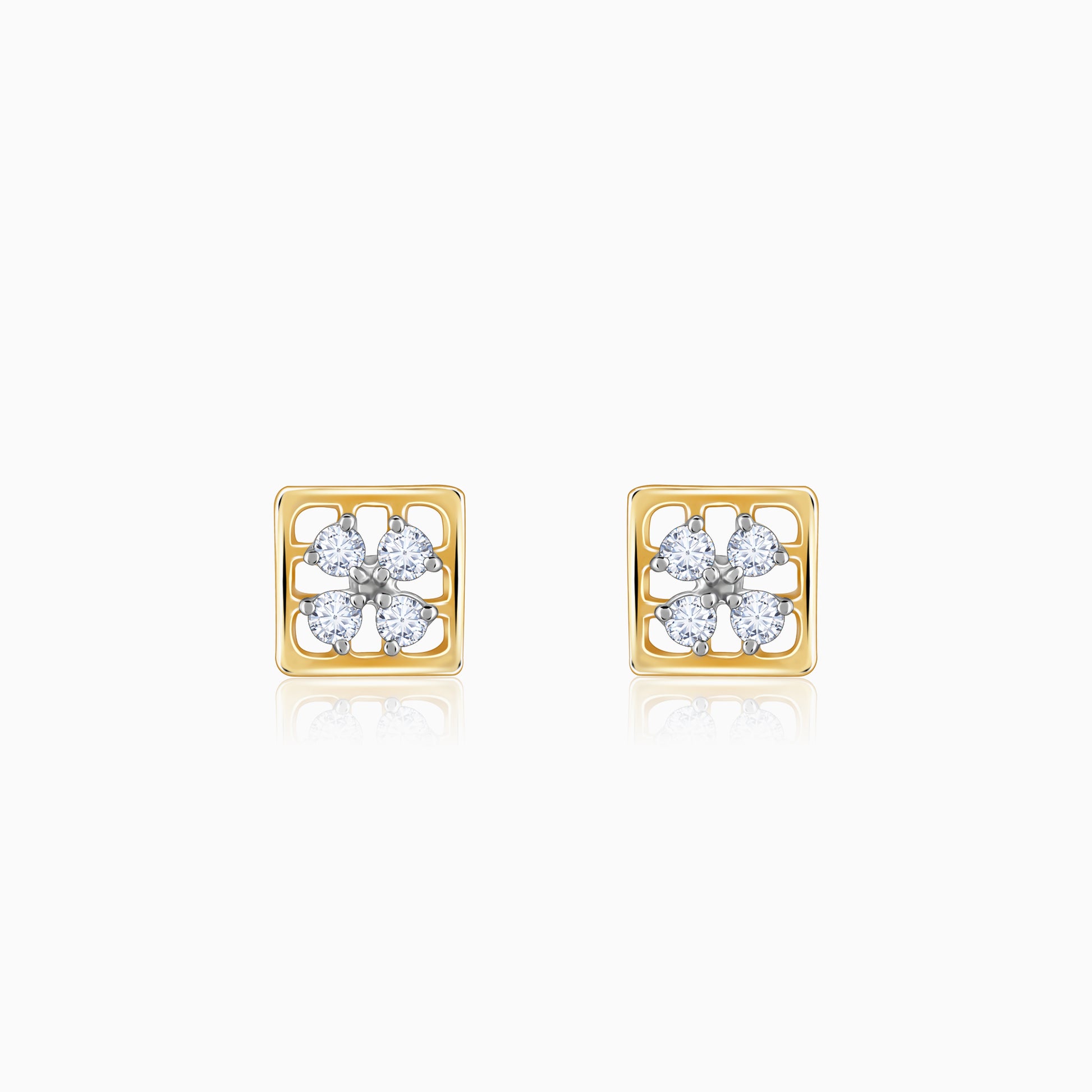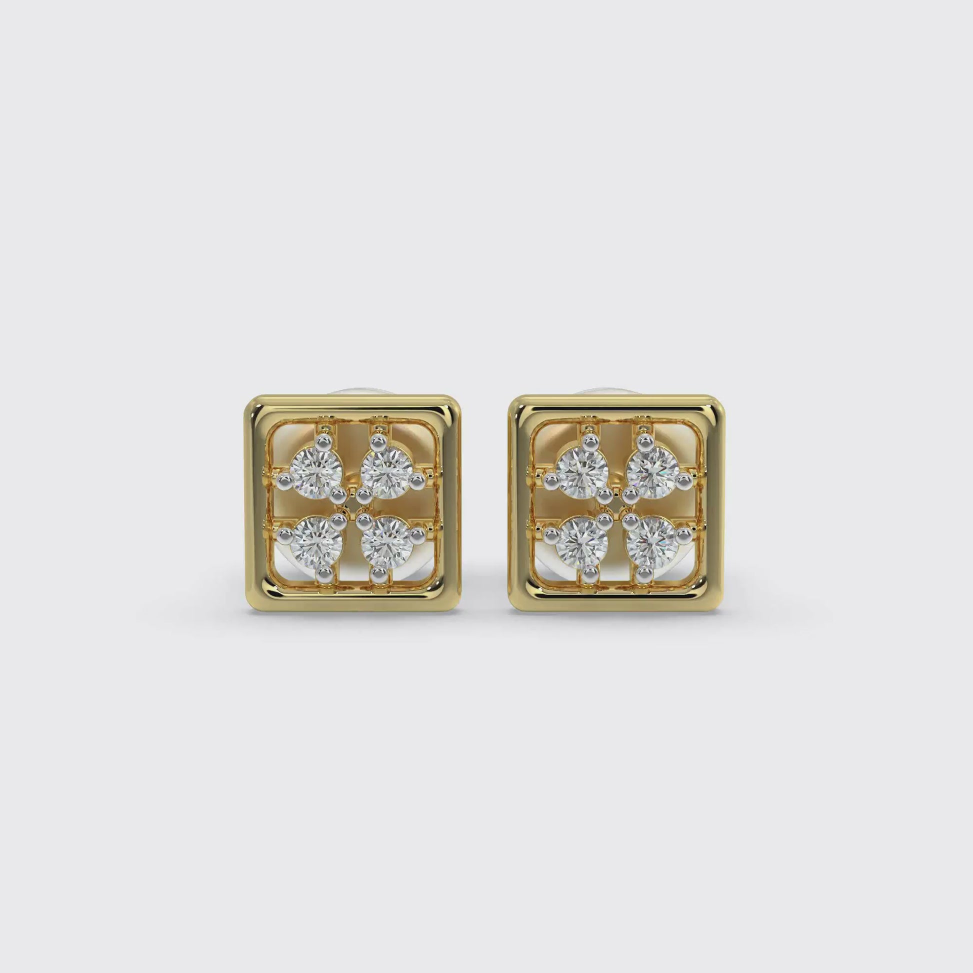 This gold stud earrings have a square motif studded with lab-grown diamonds.