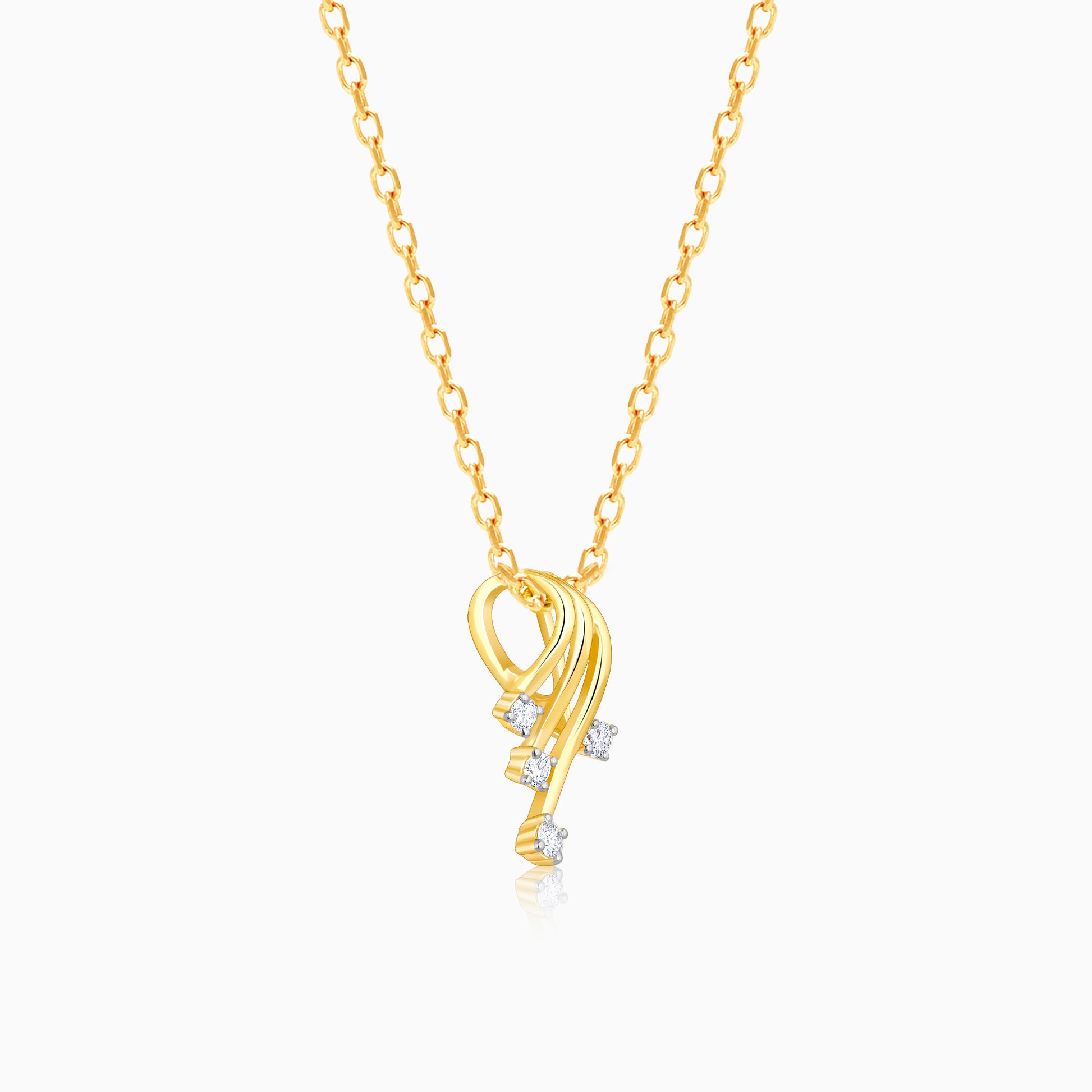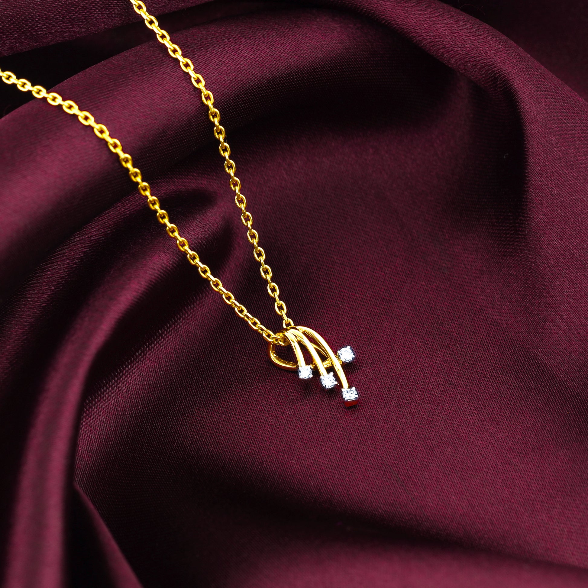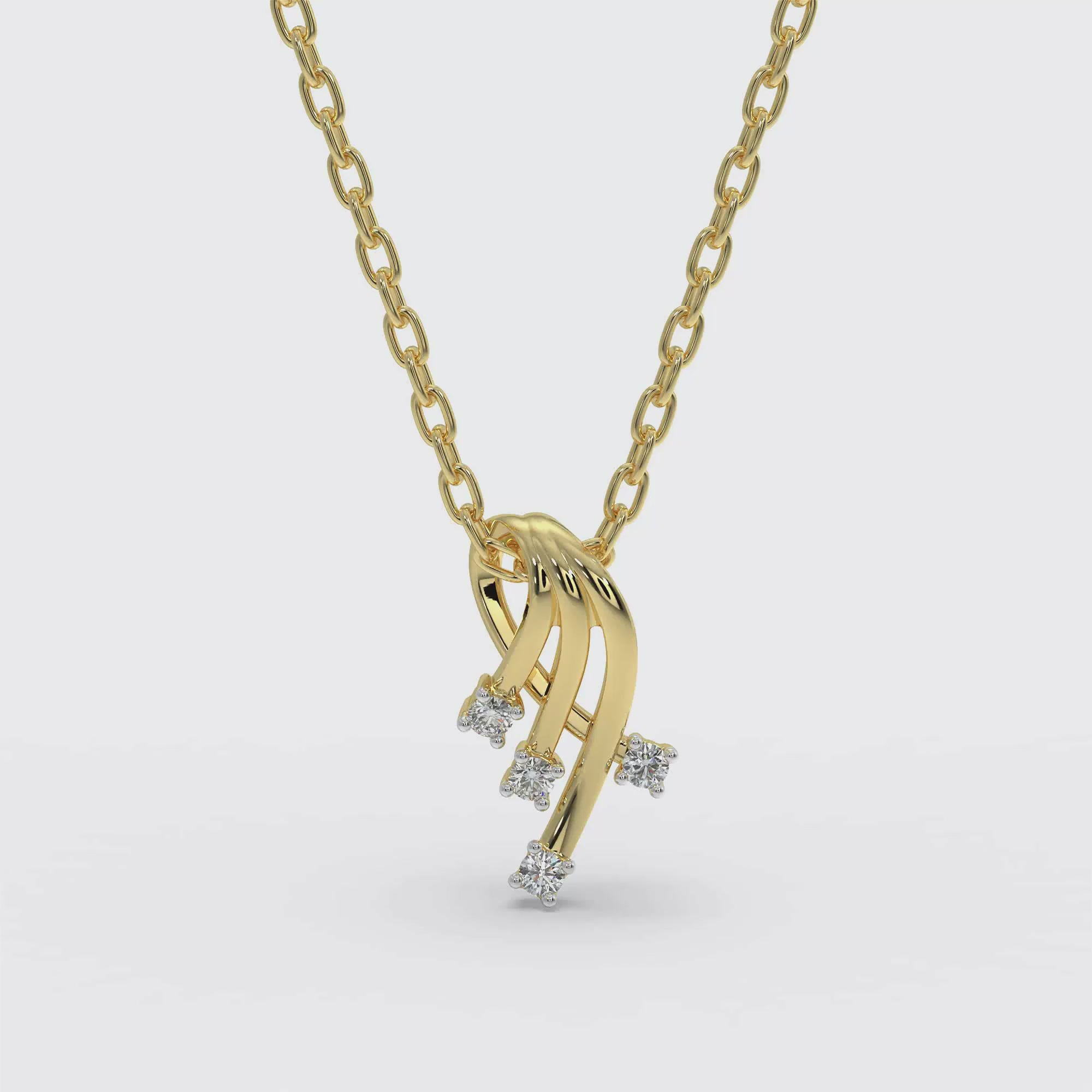 This classic gold pendant has a minimal design studded with lab grown diamonds at the end of each gold strand.