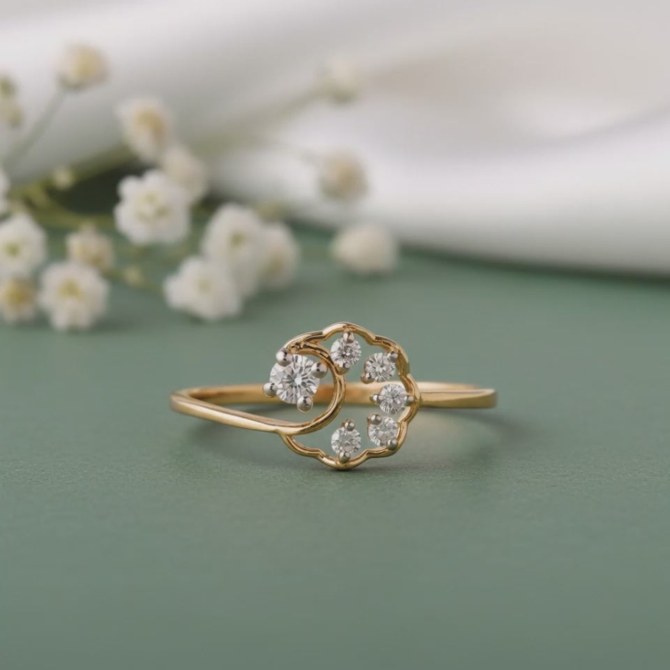 Inspired by starry nights, this gold ring for women features a whimsical, fluid shape with lab grown diamonds set at its centre. Designed for the woman who is drawn to dreamlike details with a modern edge, the form feels expressive yet intentional. Try the exquisite lab grown diamond jewellery from Heer By GIVA today.