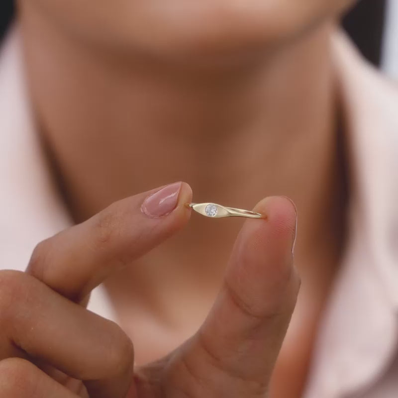 This gold ring has an eye design featuring lab-grown diamond in the centre.