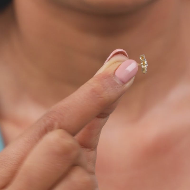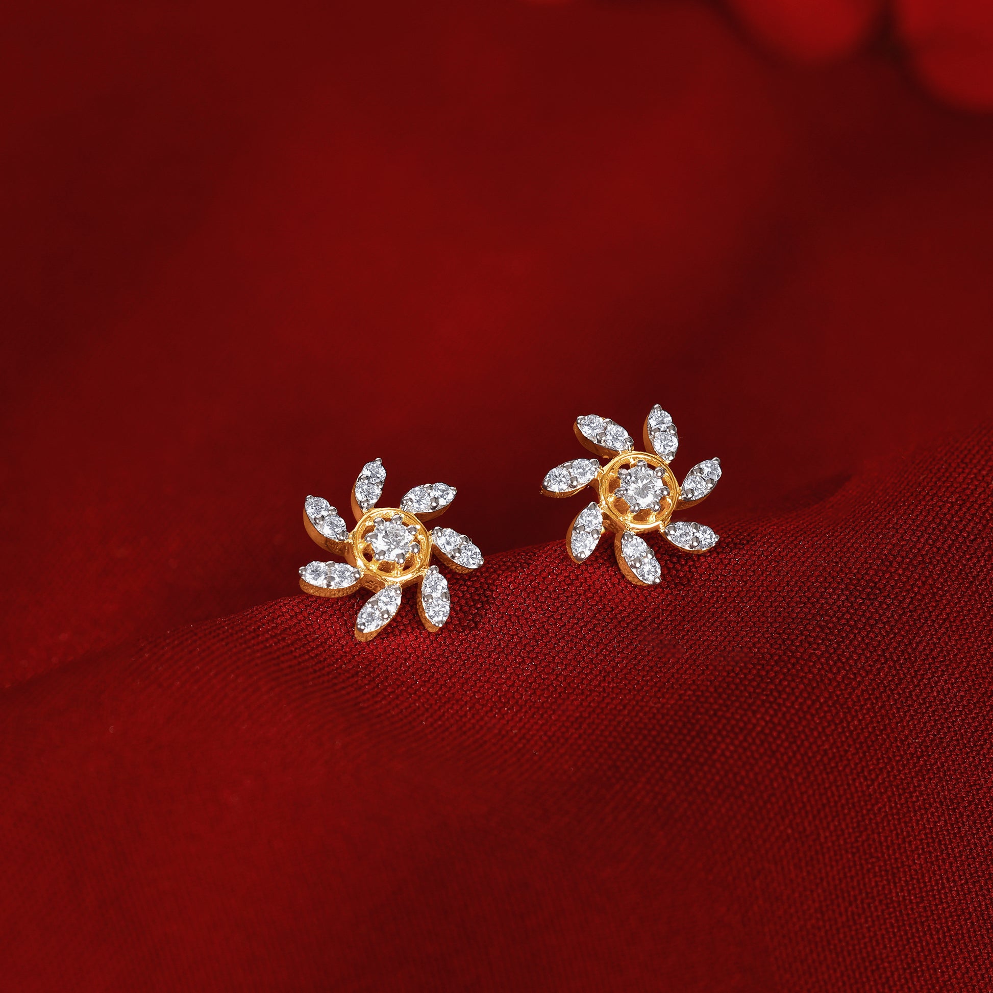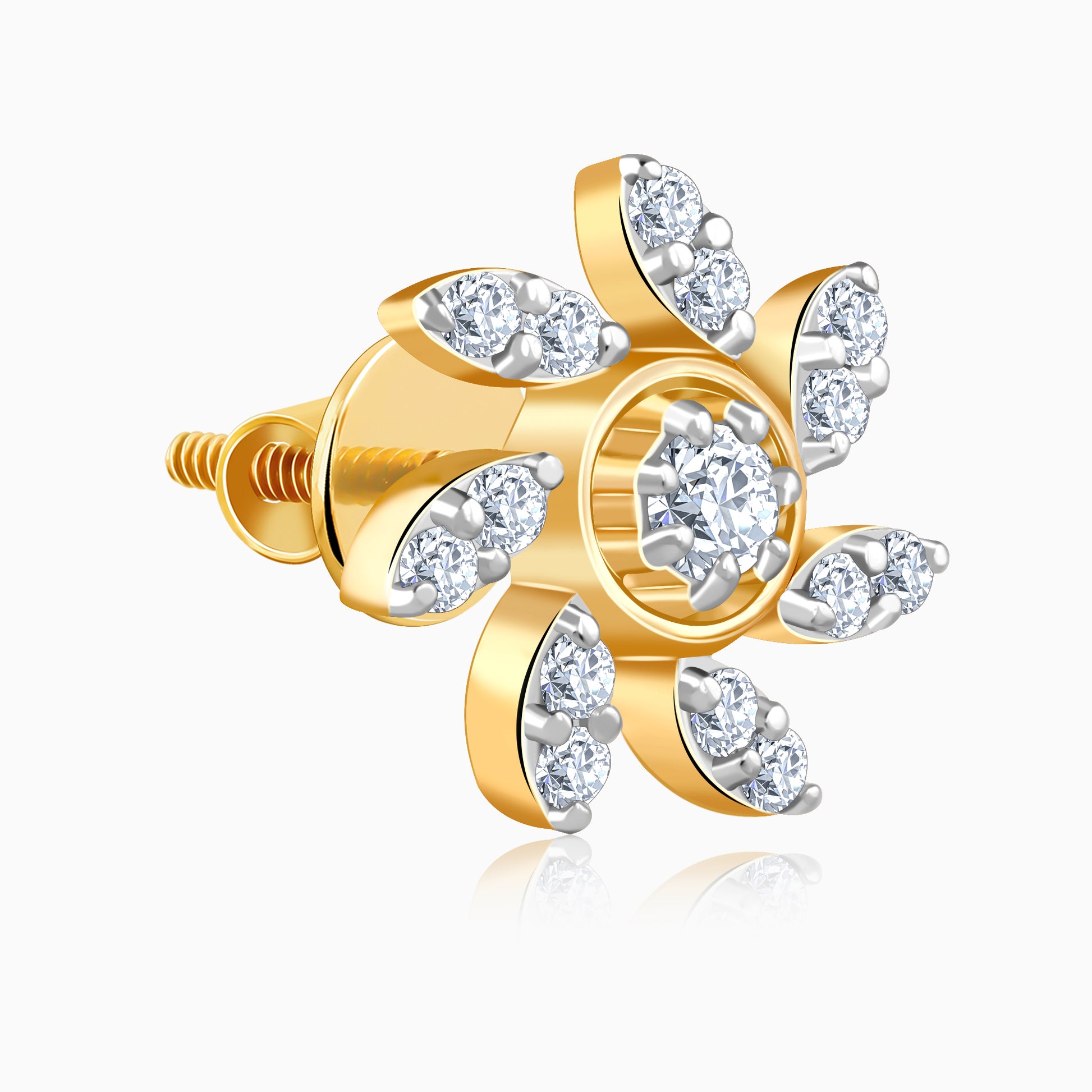 A gold earring with lab grown diamonds in a flower motifs that bloom like whispered secrets of the garden, crafted for the woman who dances through life with timeless grace and sparkling wonder. Try the exquisite lab grown diamond jewellery from Heer By GIVA today.