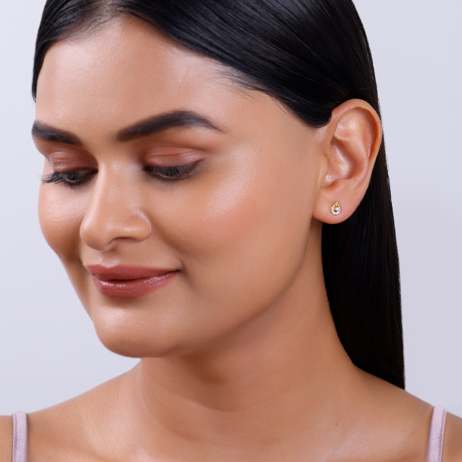 These pure gold stud earrings for women feature a teardrop design set with lab grown diamonds.