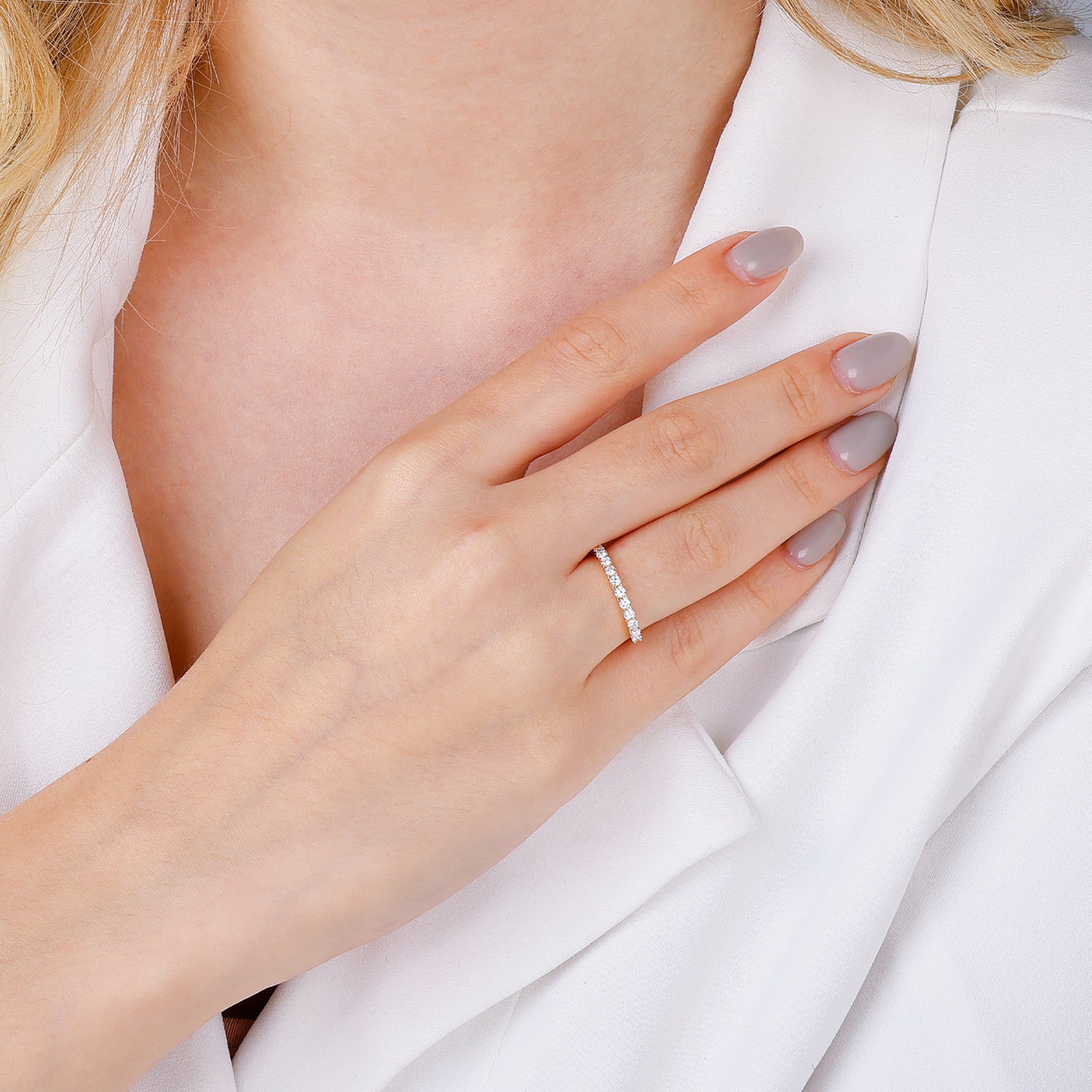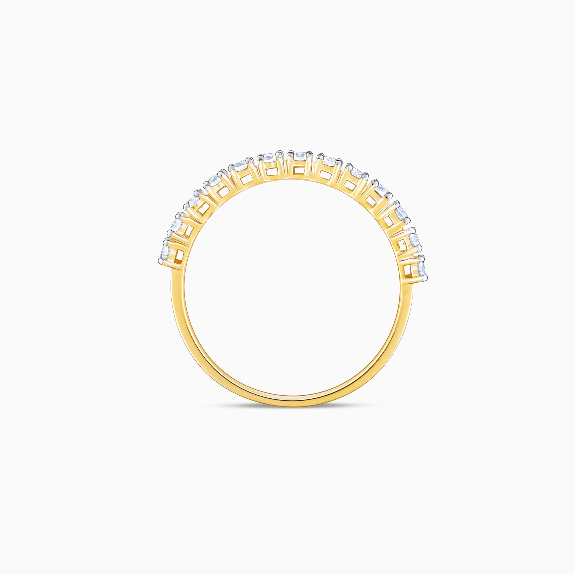 This gold ring has a classic design with lab-grown diamond studded halfway.
