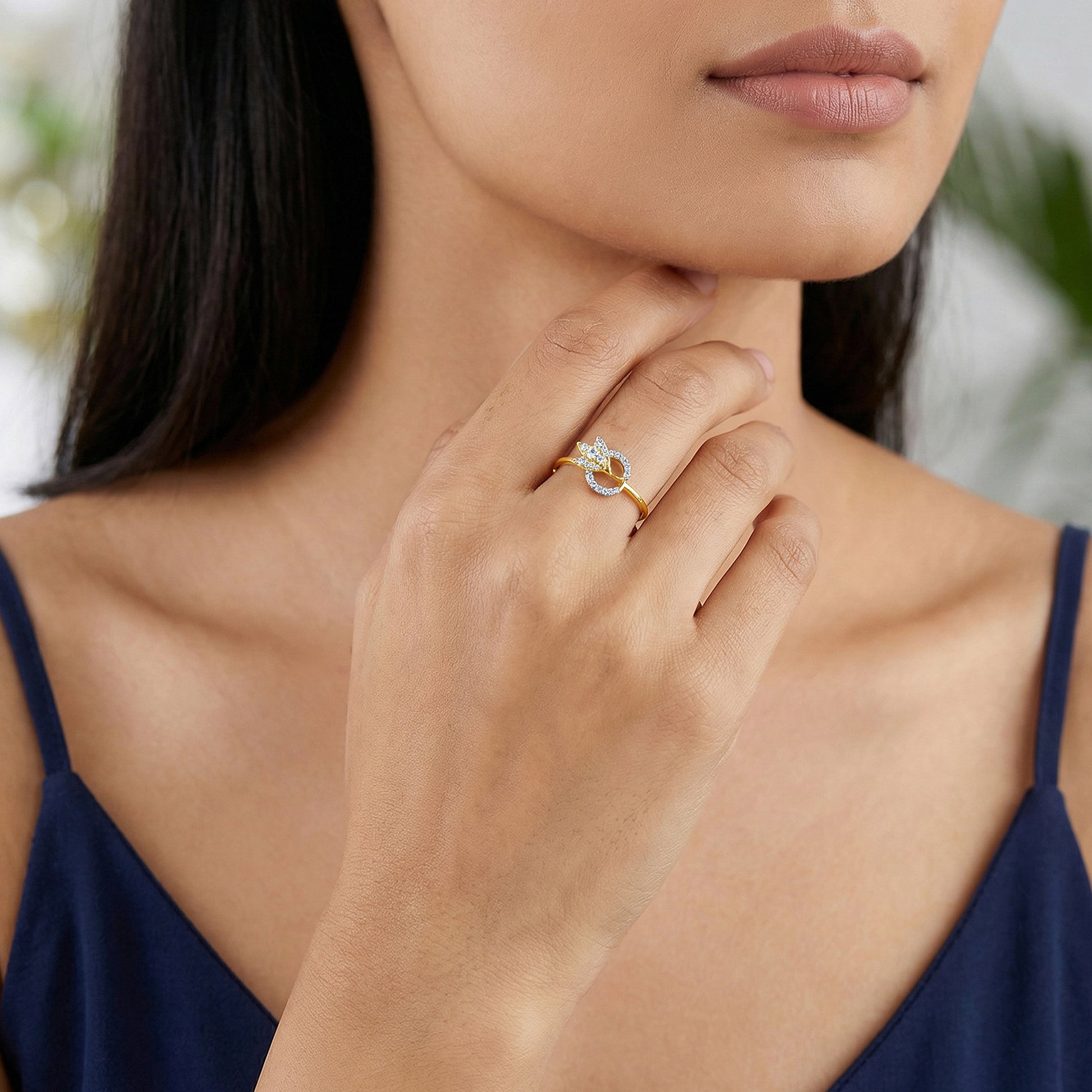 She is graceful, optimistic, and drawn to forms that feel symbolic and bright. This gold ring for women features a three-petal motif studded with lab grown diamonds, framed by a diamond-studded circle that brings balance and radiance. Try the exquisite lab grown diamond jewellery from Heer By GIVA today.