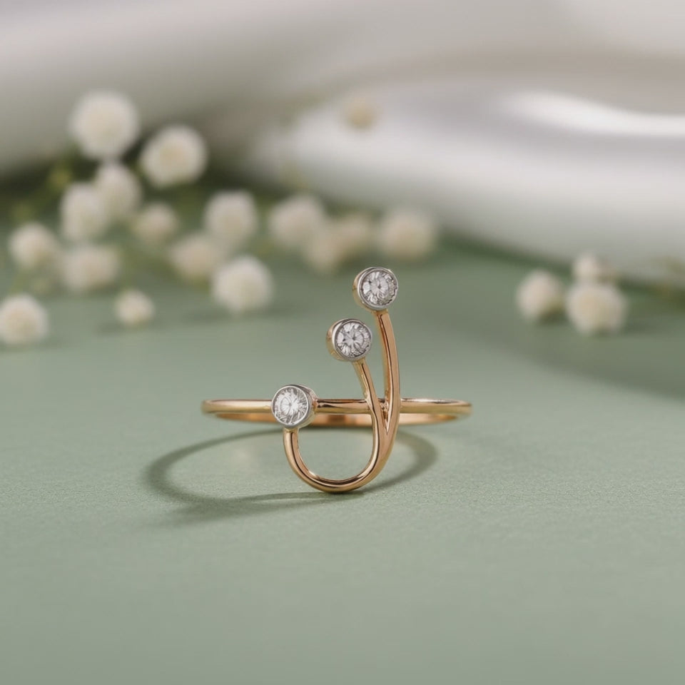A gold ring defined by a structural U-shaped bend that rises into three lab grown diamonds set on slender strands. Designed for the woman who appreciates architectural form with restrained sparkle, the open structure creates a sense of balance and intent. Try the exquisite lab grown diamond jewellery from Heer By GIVA today.