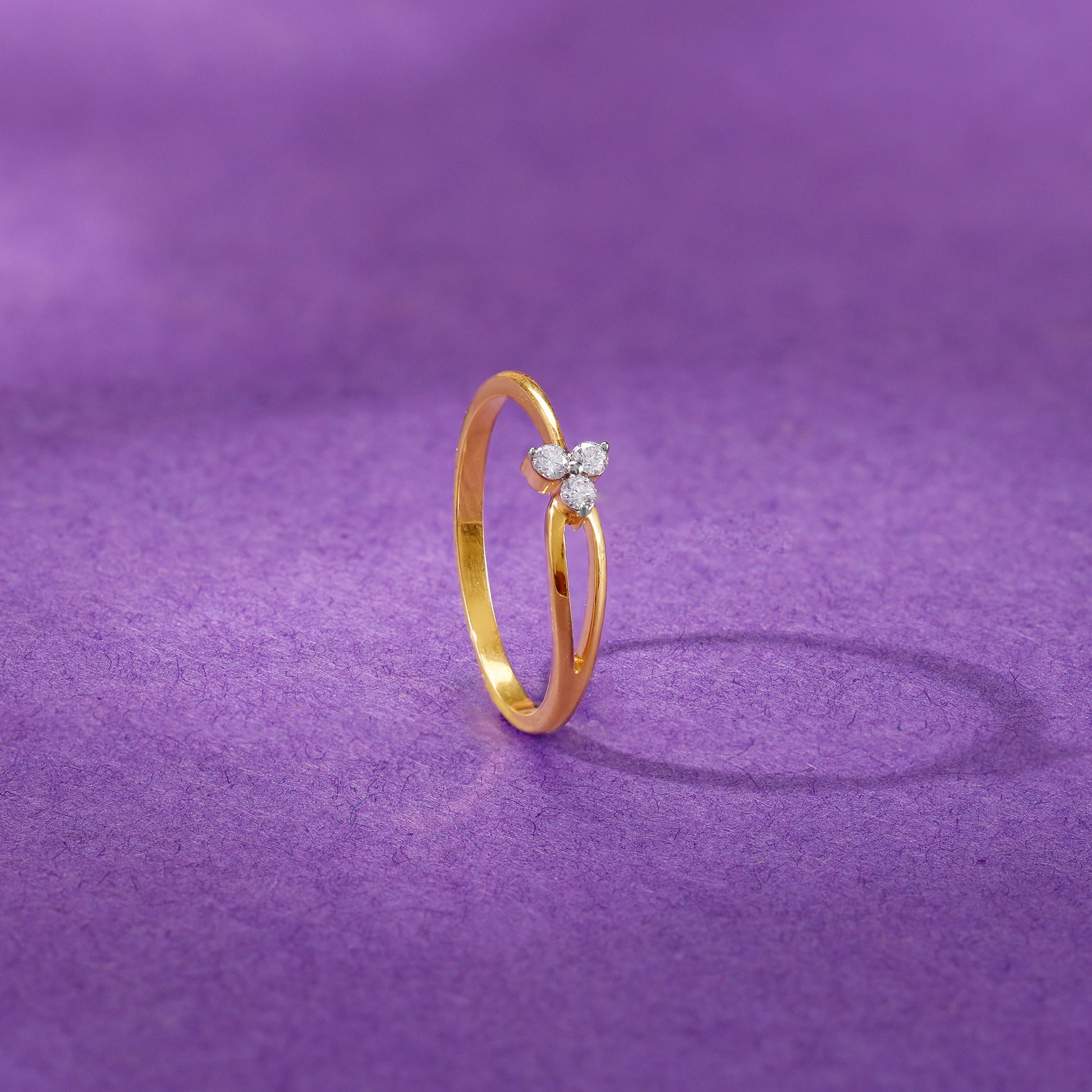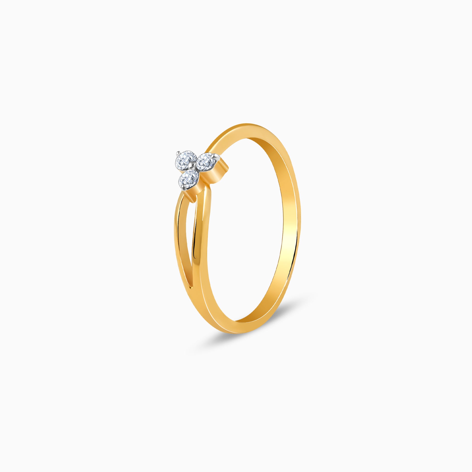 This pure gold ring for women features a three lab grown diamond cluster at its apex, forming a subtle floral motif at the centre.