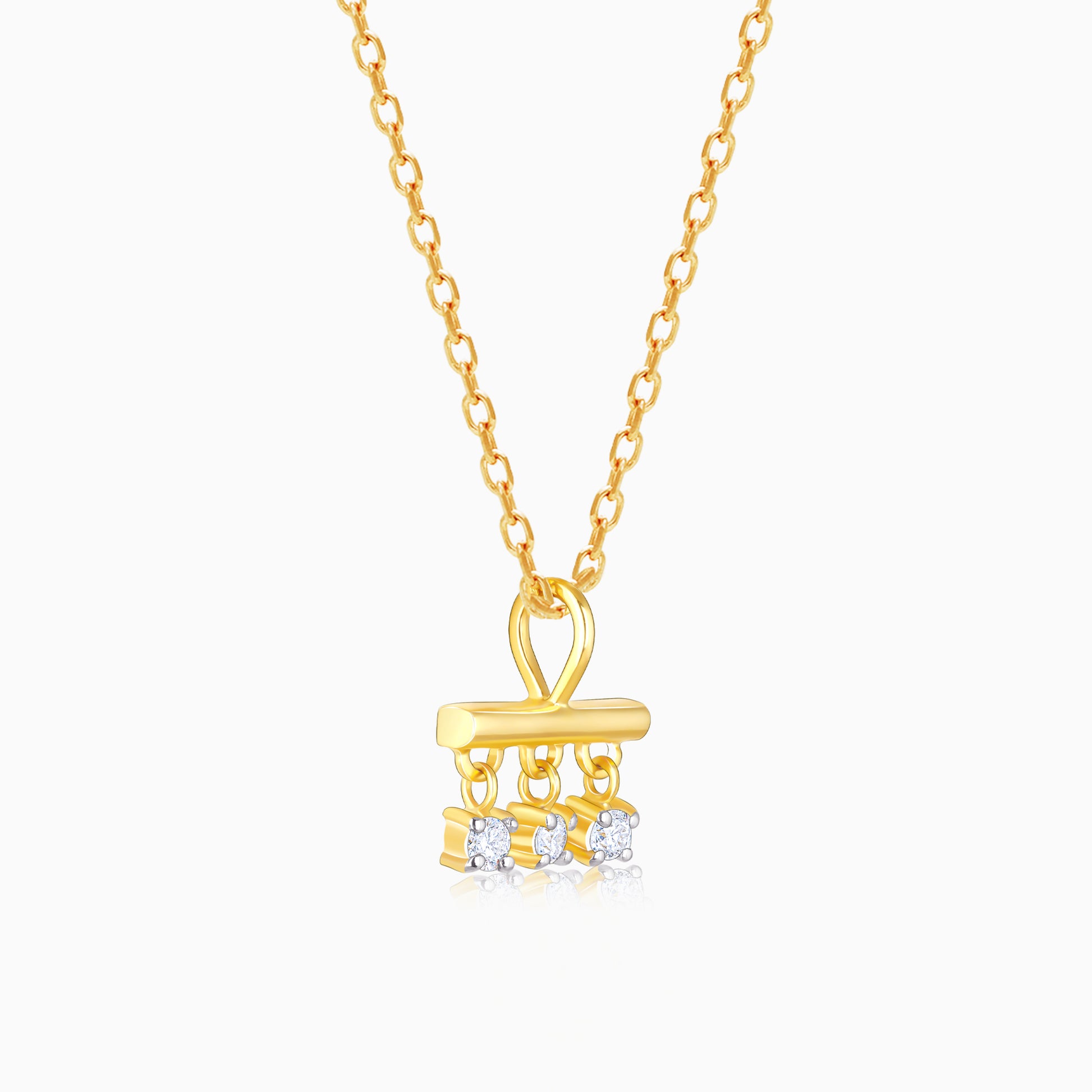 This pure gold pendant has a simple yet elegant design with a focus on symmetry and clean lines with lab grown diamonds.