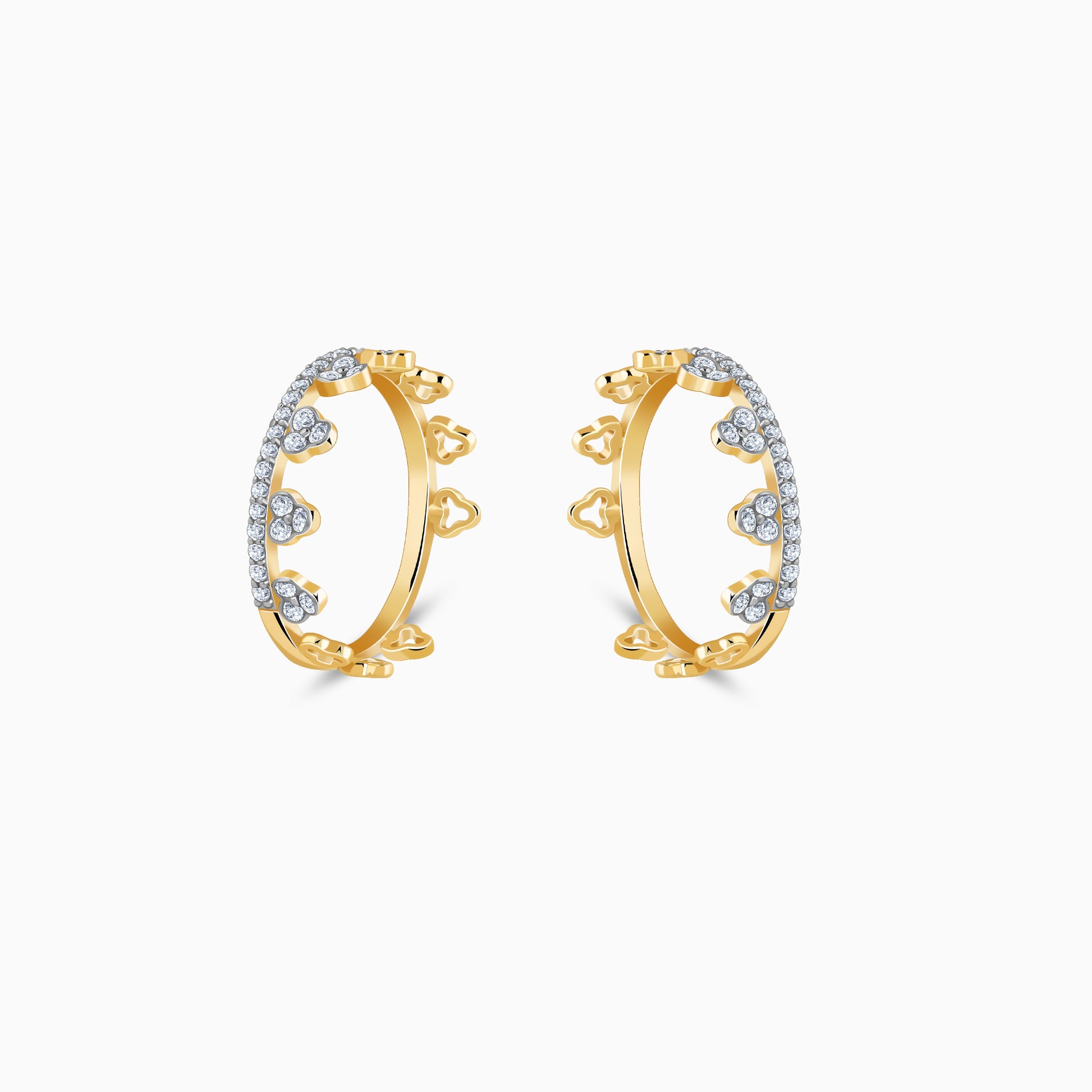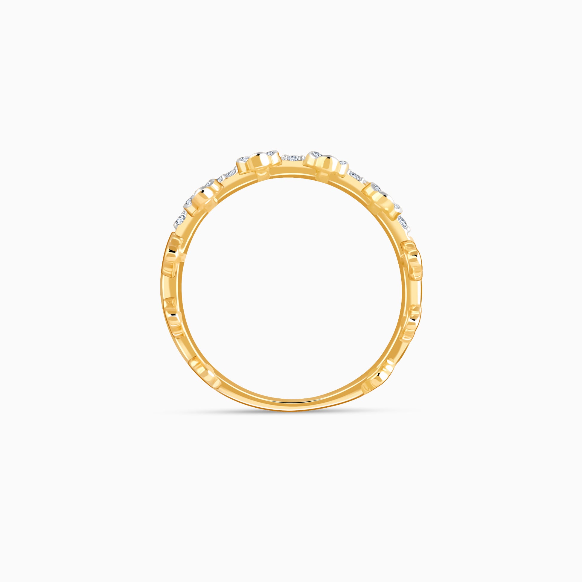 The pure gold ring for women features two stackable bands—one with floral lab diamond motifs and the other with a sleek pavé edge.