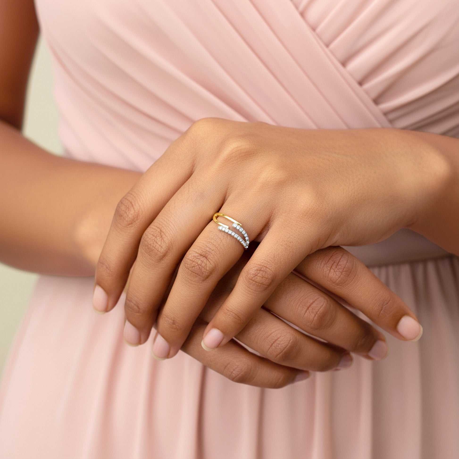A masterpiece of modern symmetry, this gold ring for women features dual bands, one side gleaming in pure gold, the other shimmering with lab grown diamonds. A perfect balance of bold and beautiful, this ring celebrates the harmony between simplicity and sparkle. Try the exquisite lab grown diamond jewellery from Heer By GIVA today.