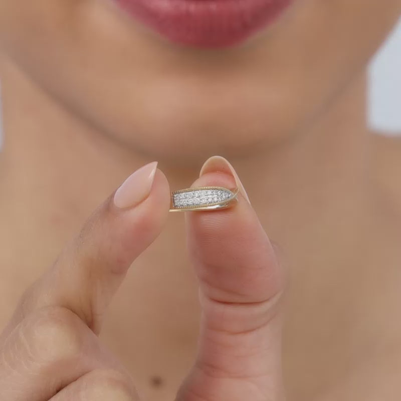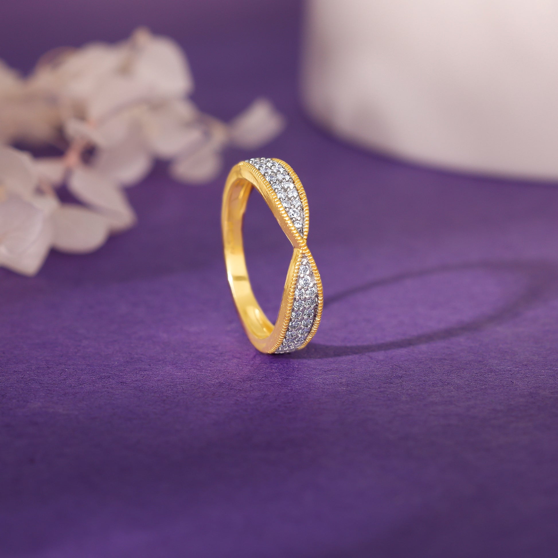 This pure gold ring features a twisted shape studded with lab grown diamonds.