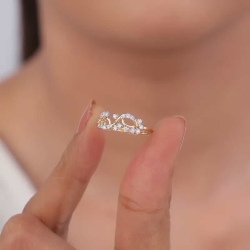This pure gold ring for women features a unique floral motif studded with sparkling lab grown diamonds.