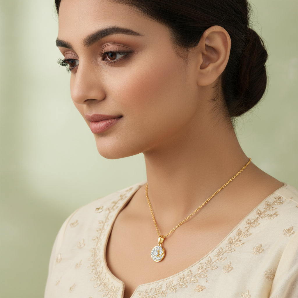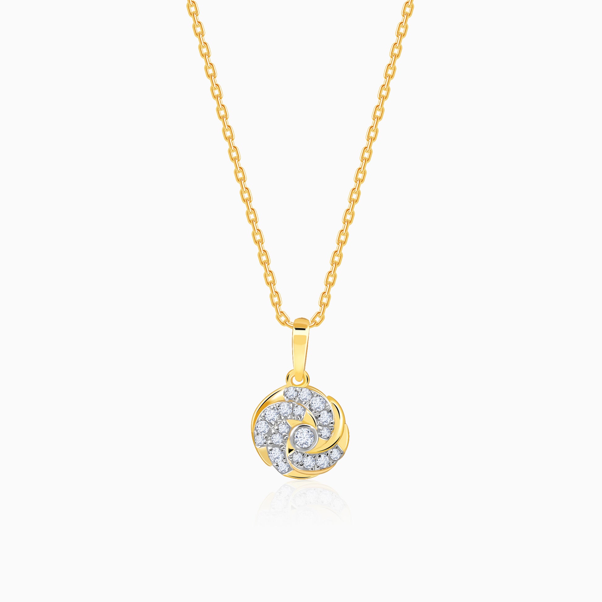 This gold pendant for women features a spiral design with lab grown diamonds. At its heart lies a sparkling centre diamond in a prong setting, adding a touch of timeless brilliance. Try the exquisite lab grown diamond jewellery from Heer By GIVA today.