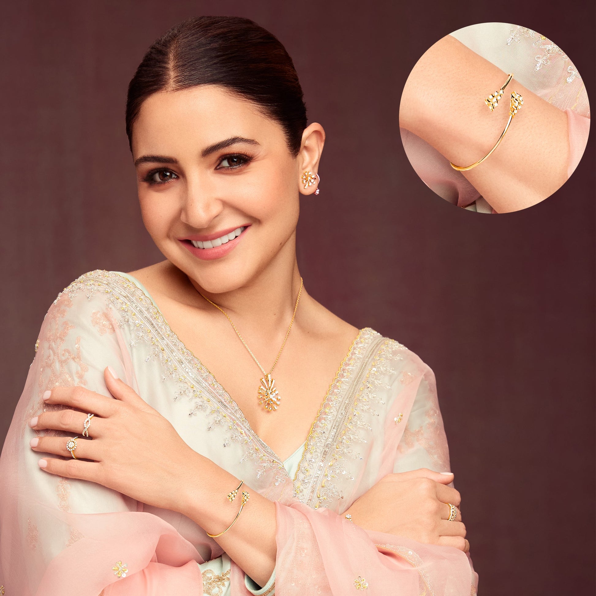 A delicate design, blossoming with charm just like a fresh flower garden. Wear this precious bangle bracelet to add sparkle to your ensemble.