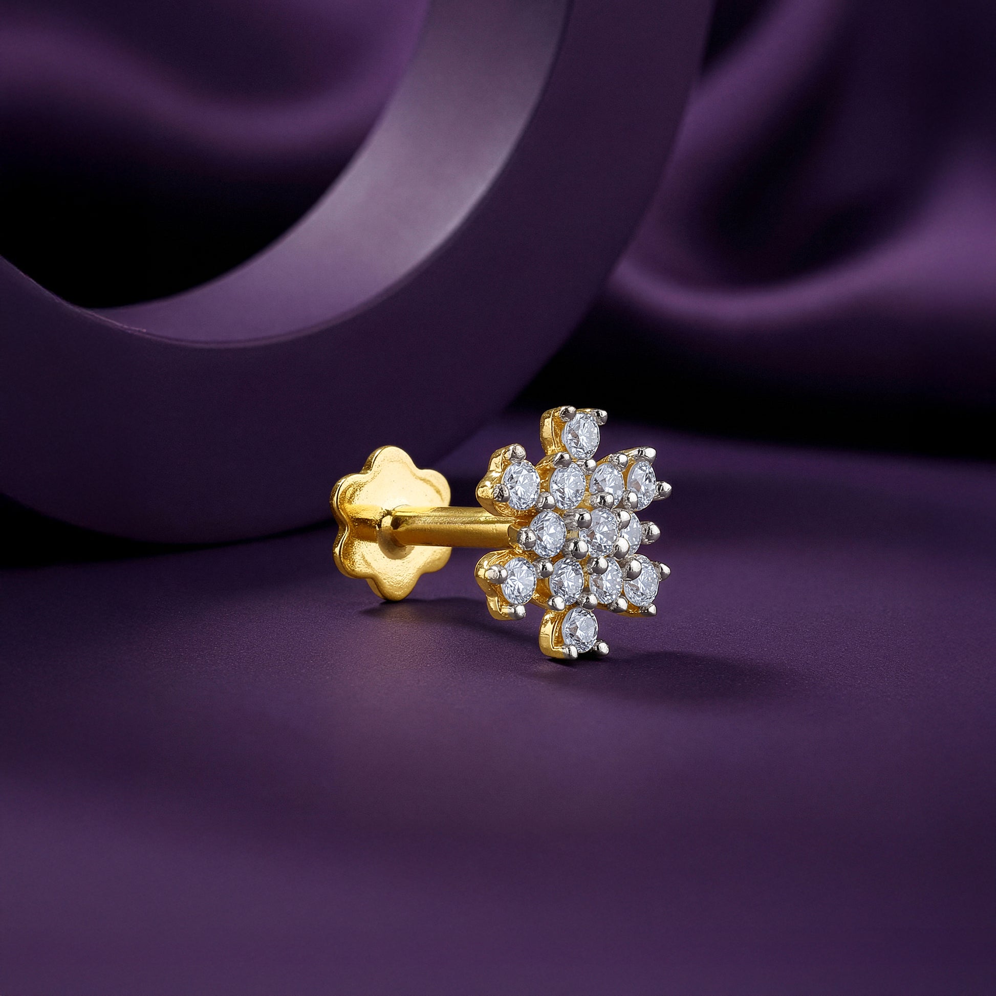 Gold Vanya Flora Lab Grown Diamond Nose Pin