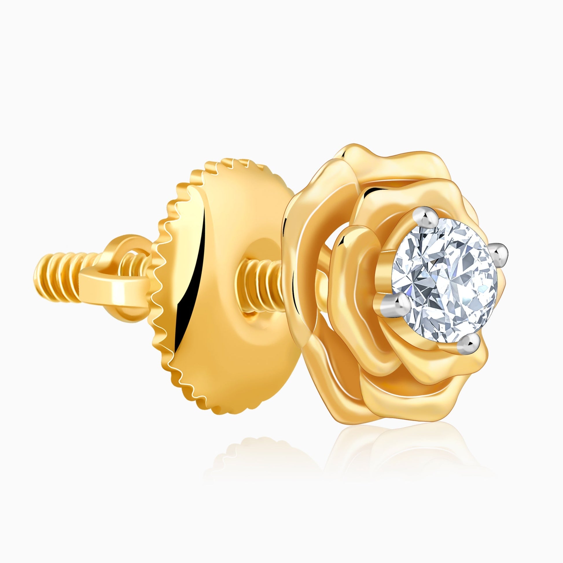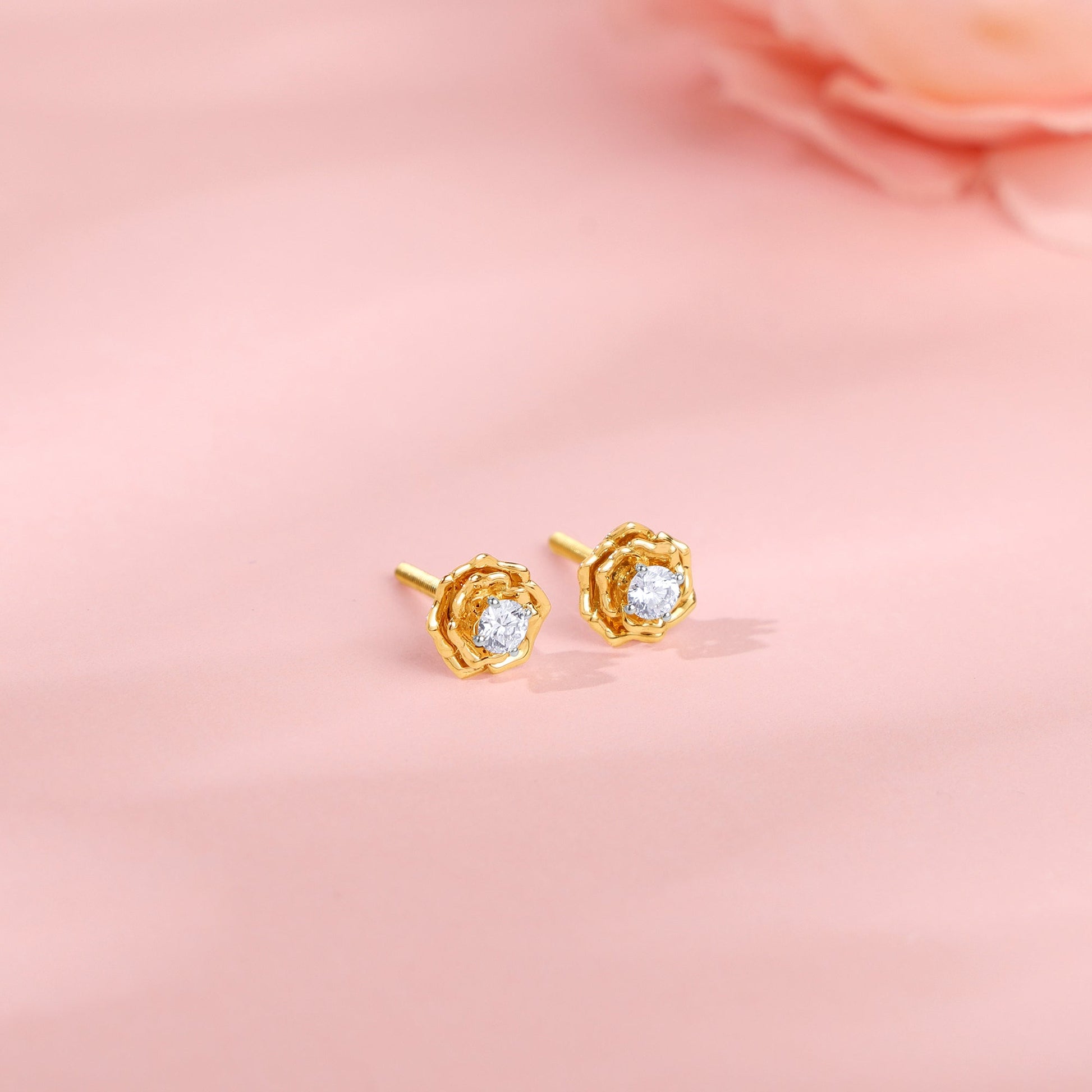 These pure gold earrings for women feature a flower design studded with lab grown diamonds.
