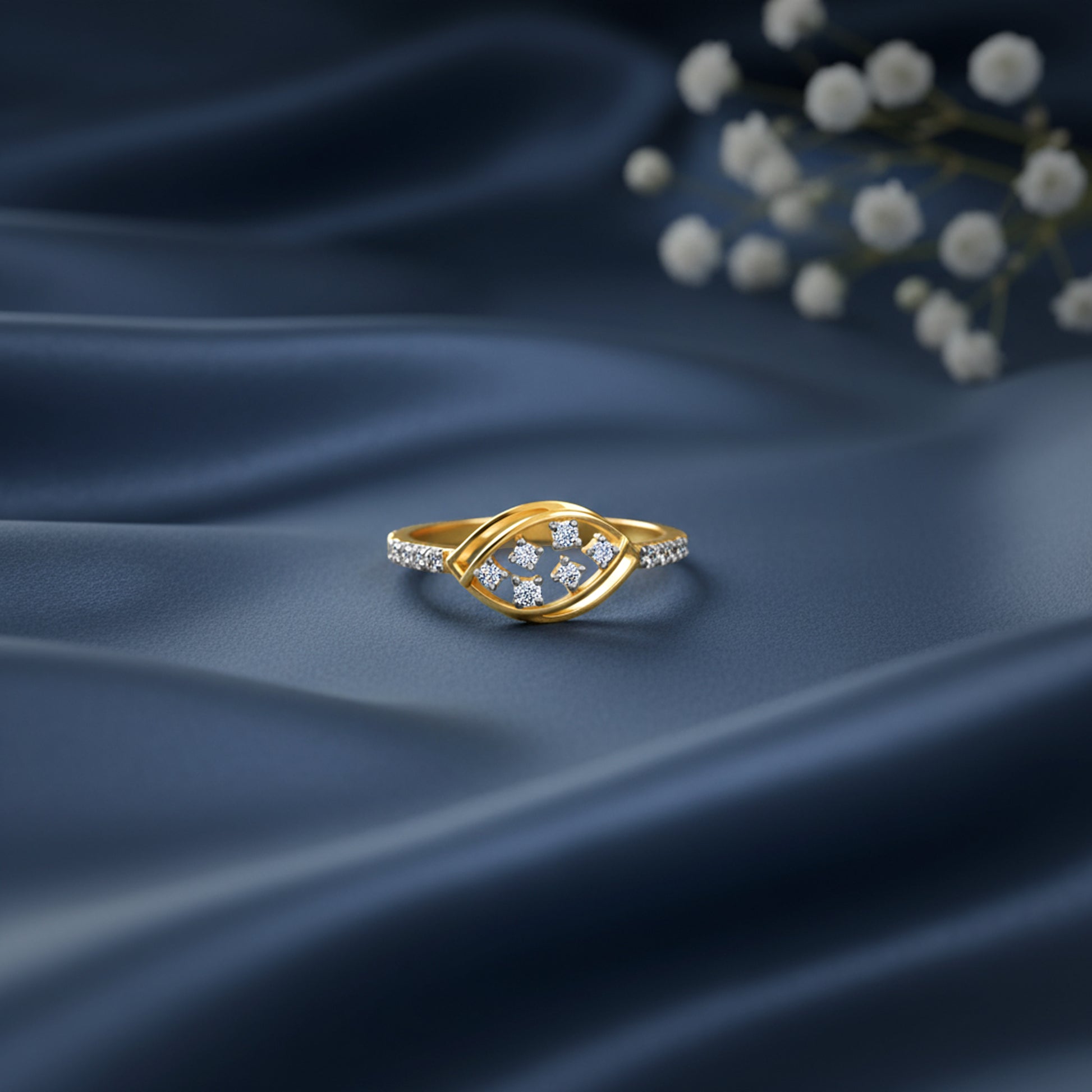 This ring is a captivating blend of vision and refined luxury. It features a classic eye-shaped centrepiece set with lab grown diamonds, while the band is also fully set with sparkling lab diamonds. Try the exquisite lab grown diamond jewellery from Heer By GIVA today.