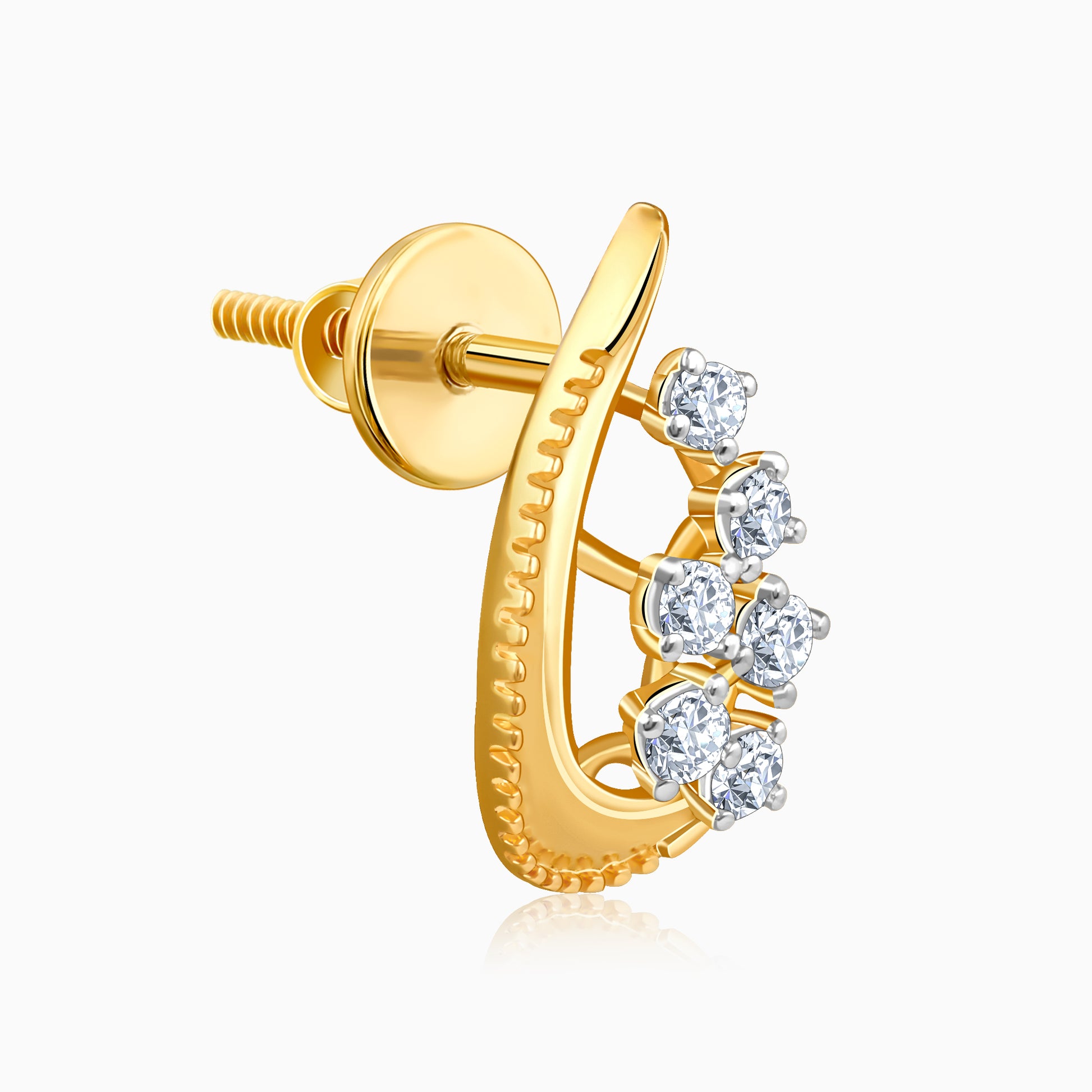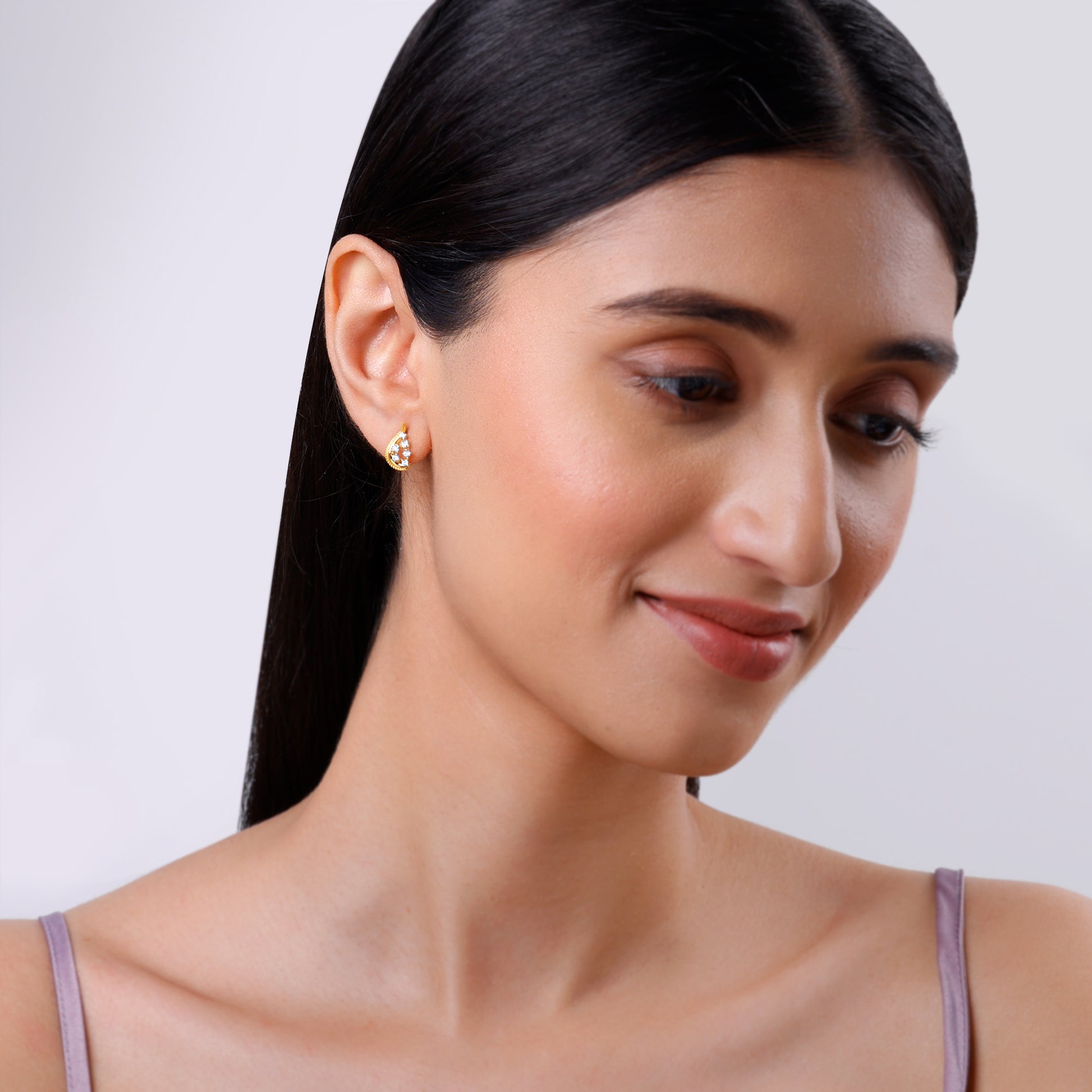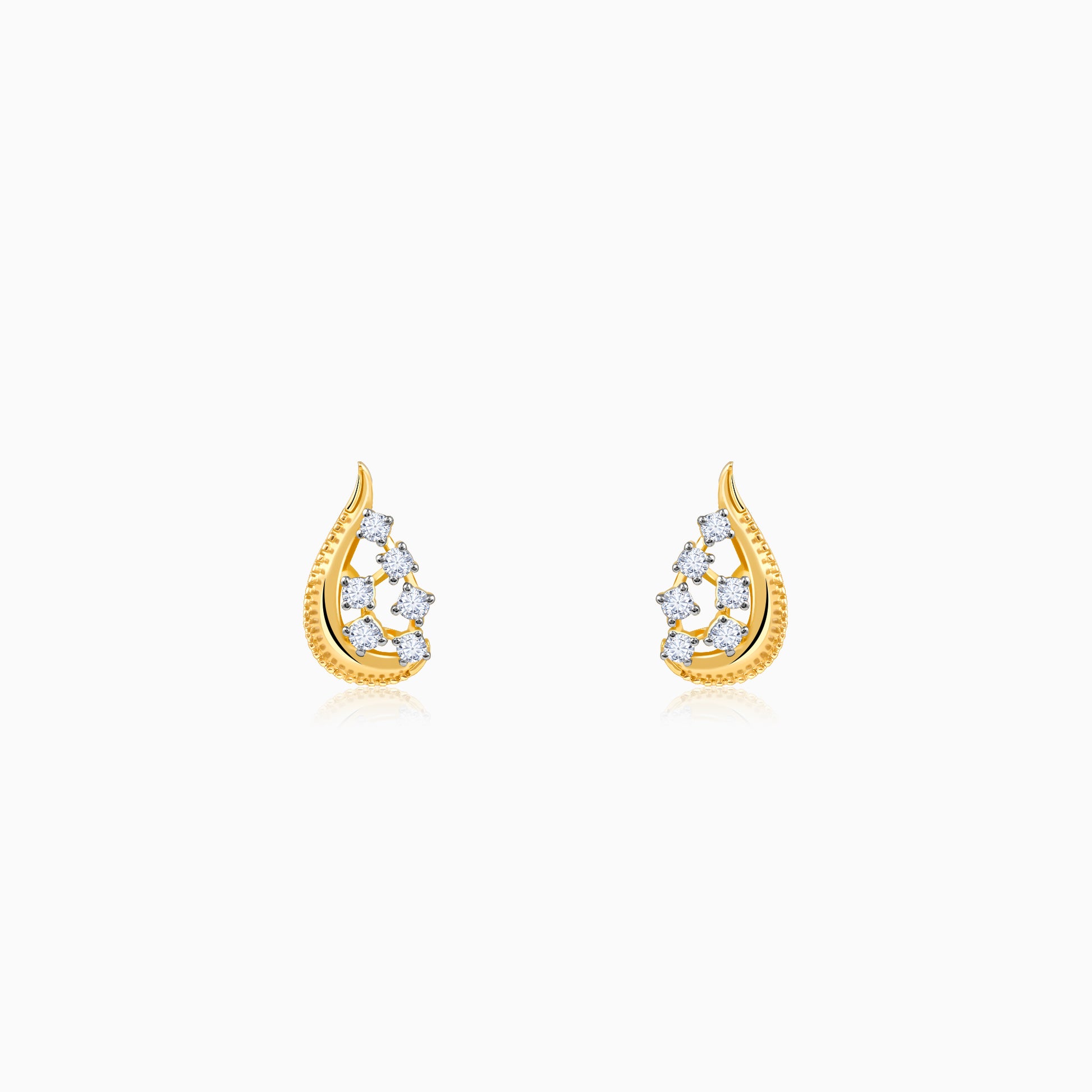 These pure gold studs for women feature a half-framed teardrop motif. The motif comprises several lab grown diamonds set in a spaced-out manner, creating a constellation-like effect.