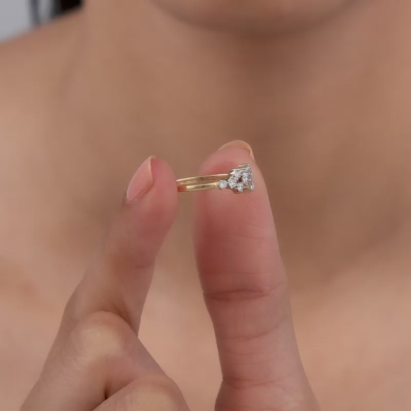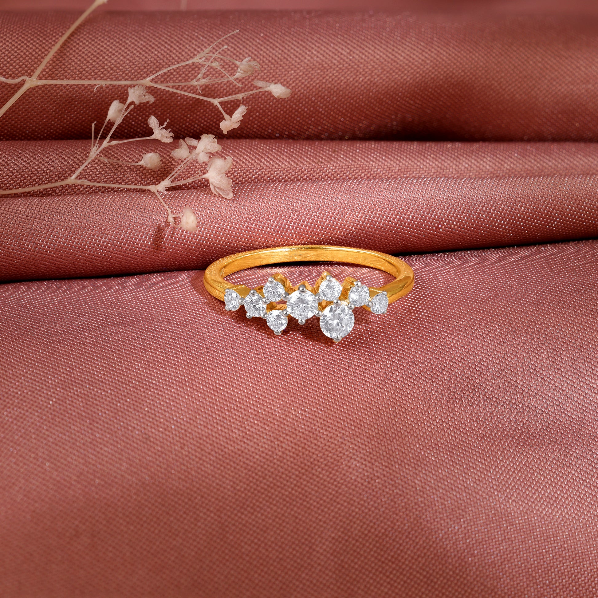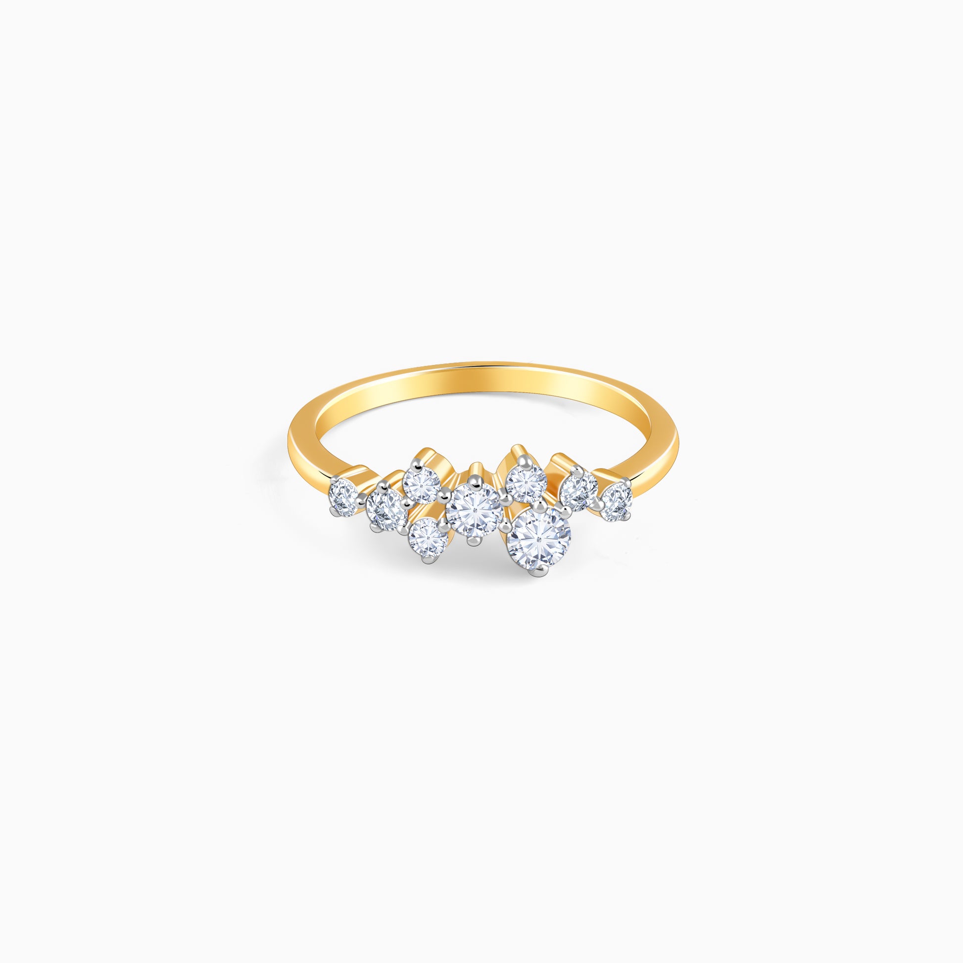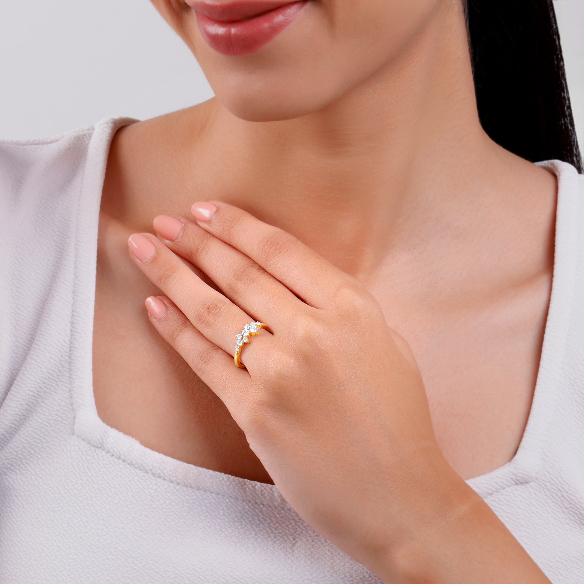This pure gold ring for women features a cluster of lab grown diamonds portraying dew drop effect. anchored on a slim gold band for an effortlessly luxurious finish.