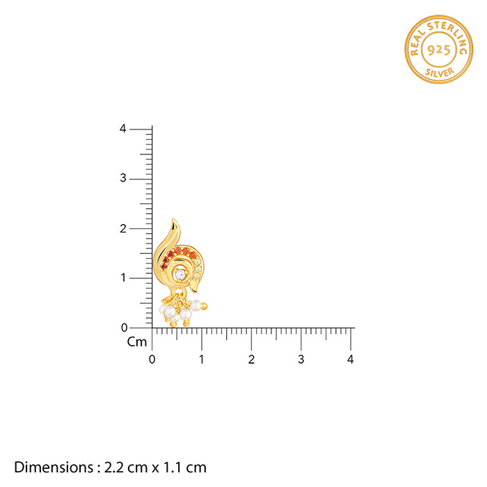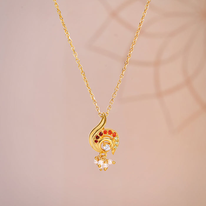 This gold plated pendant for women features a swirl-inspired design, studded with colourful and white zircons. A cluster of pearls hangs below. Designed in Italy. Inspired by India. Embrace the goddess within with the Shakti Collection by GIVA x Anna Giulia Chicco.