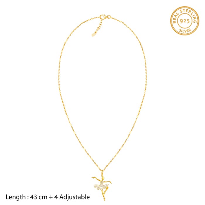This pendant features impeccable detailing with a dancing girl charm studded with zircons.