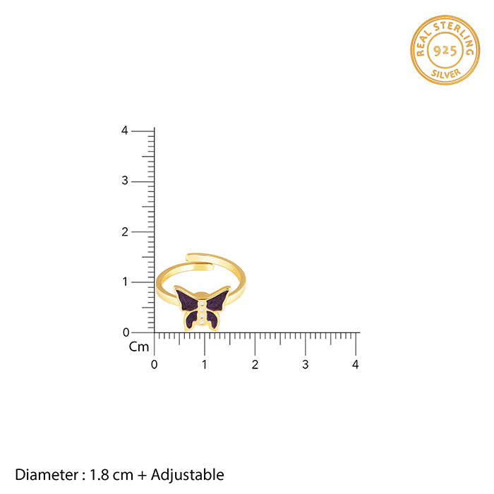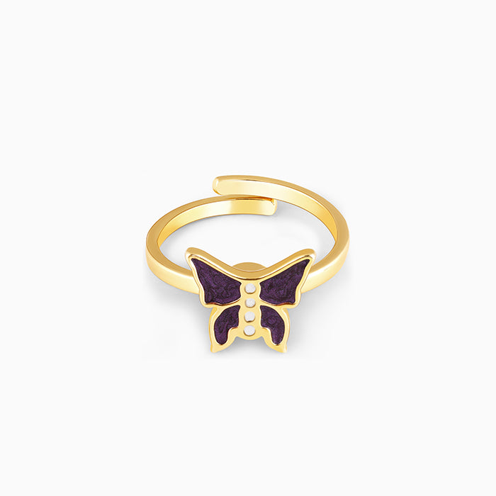 The Golden ring is adjustable and has a butterfly design that spins.