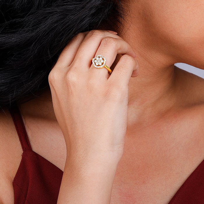 The Golden Celestial Bloom Ring is inspired by love's fragrance that fills the air, filling our senses and reminding us of the magic we share.