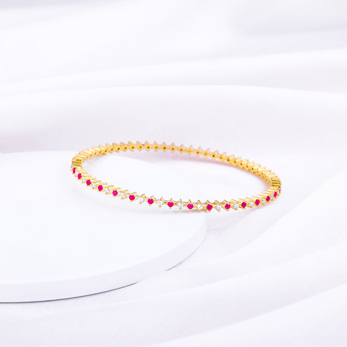 This golden bangle has a gorgeous design with pink and white zircon placed alternatively.