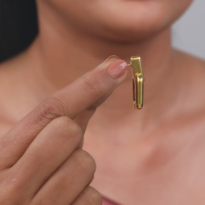 Bold, structured, and unmistakably modern, these chunky loop hoop earrings are designed to make an impact. Their geometric form and high-shine finish add instant attitude to even the simplest outfits.