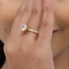 This golden ring has a big solitaire cut zircon set in the centre with small zircons studded on both sides of the band.
