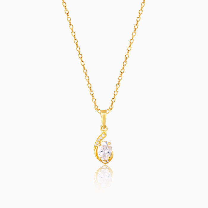 This golden pendant features a unique design set with zircons and a single large zircon stone placed at the centre.