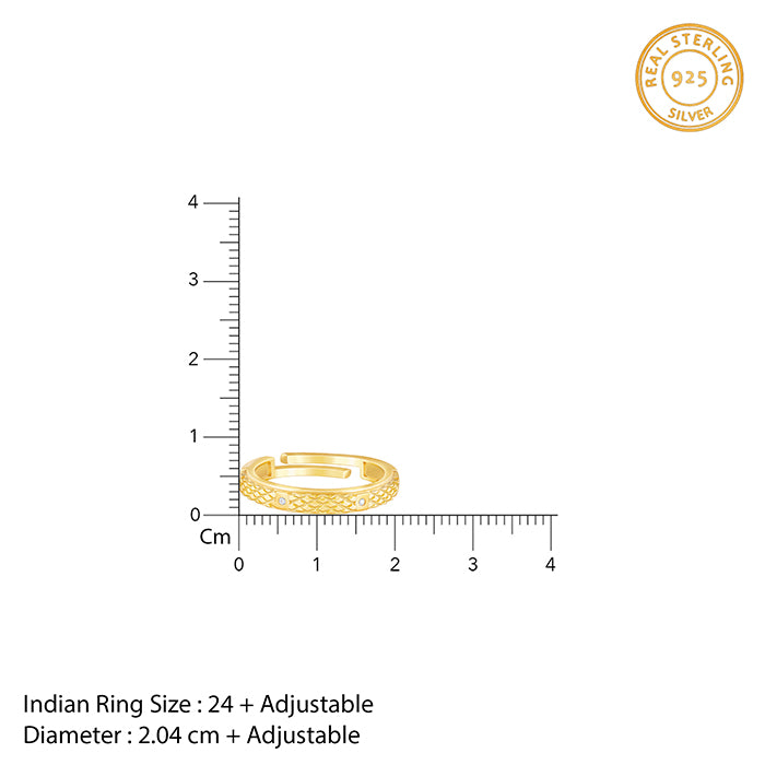 This gold plated men's ring features a criss-cross design etched on the band. Zircons are elegantly placed around it for a striking finish.