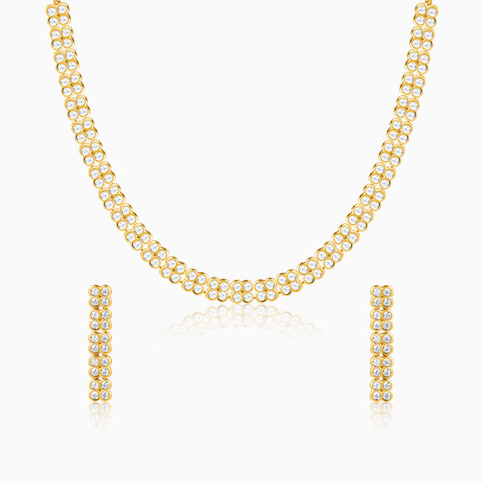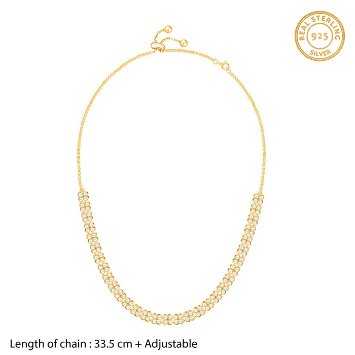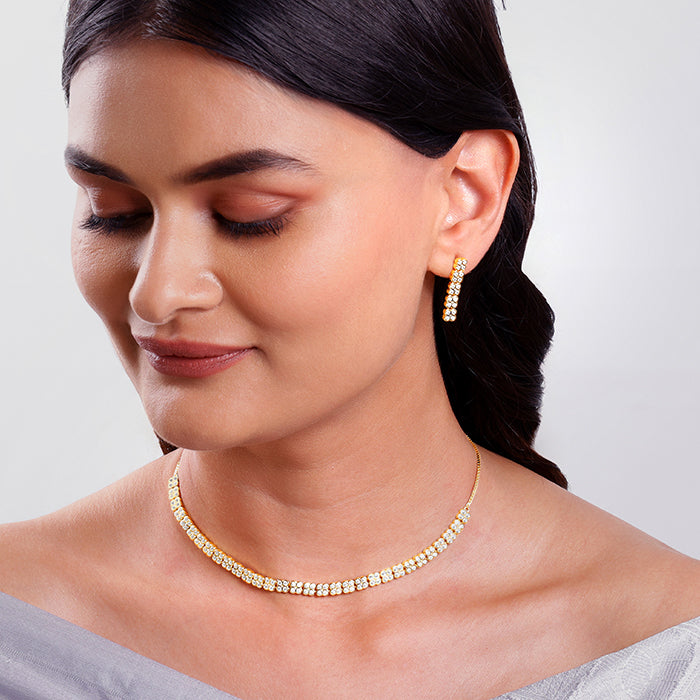 This gold plated set includes a necklace and matching studs for women. The set features floral designs. Each flower is beautifully studded with sparkling zircons. Presenting our DIVA Collection - a limited edition silver jewellery meant for the women who own every room. Be the star of the party, always.