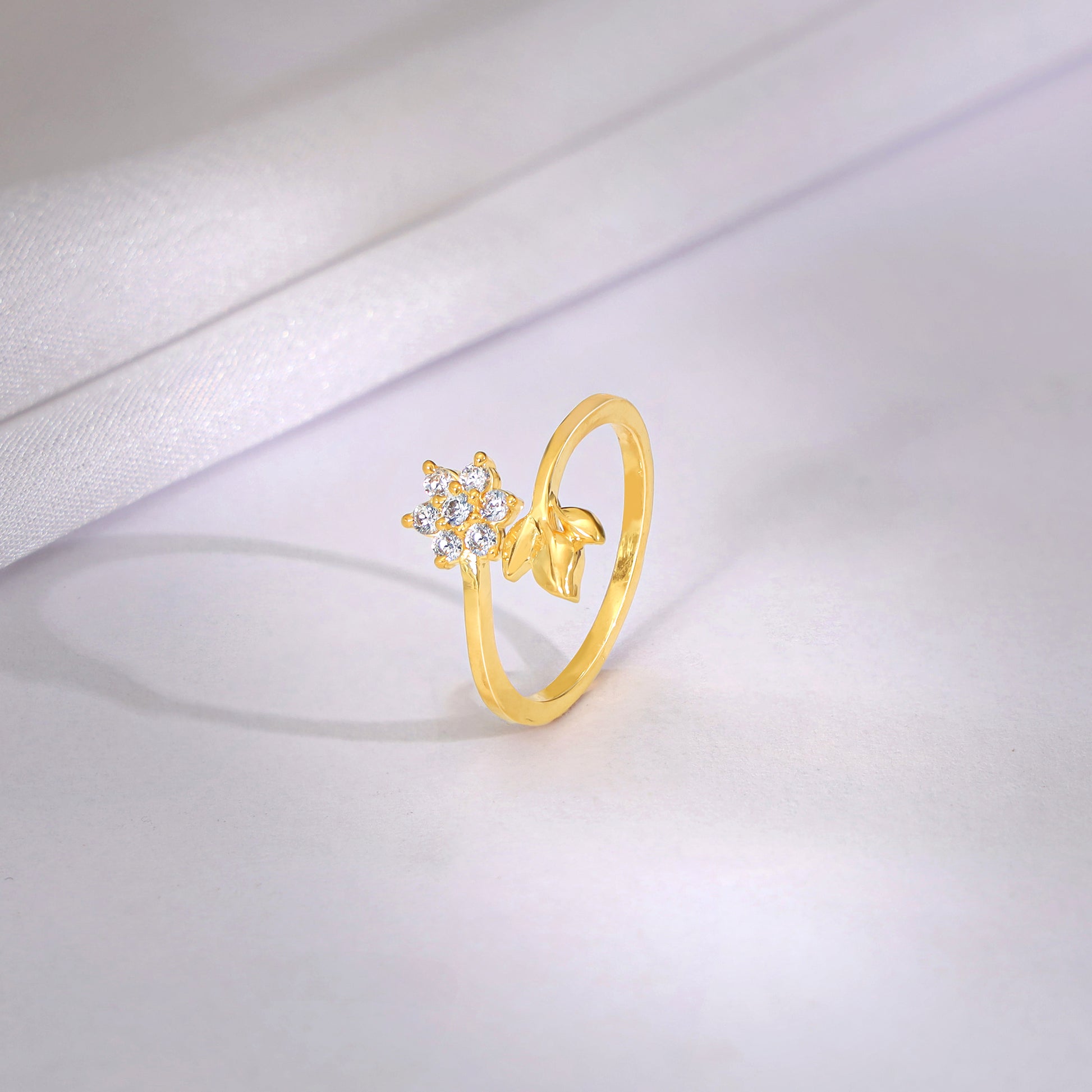 The Gold Plated Flower Girl Ring has a lovely floral design with studded zircons.